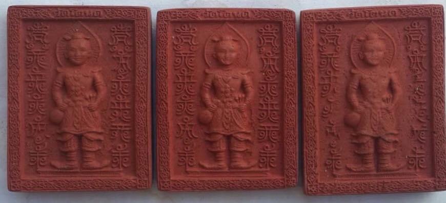 แม้แต่พระยังกลัวเสียงหมาในคืนหนึ่งของคืนนั้นจนจบพิธีการ จำนวน 109 องค์ นำลงมาเลย์ประมาณ 15 องค์ มวลสารเป็นเนื้อสีดินโป่ง ผงพรายพิเศษด้านอาถรรพ์ ผงเก้าทัพ ผงพรายโบราณ สีผึ้งเกินเบอร์หนึ่งและน้ำมัน และอีกสองชิ้นพิเศษที่ถูกปิดบังไว้ด้วยเศษนิลตรงกลางด้านหลัง ประสพการตรงจากผู้ที่บูชาไปมีเยอะมาก กุมารชุดนี้หมดและหายากแล้ว สงสัยสอบถามรายละเอียดและข้อมูลเพิมเติมได้ที่ ครูบาแบ่ง ฯ วัดโตนด ครับ size 3.5 x 4.5 cm. 1,500.-