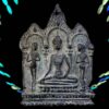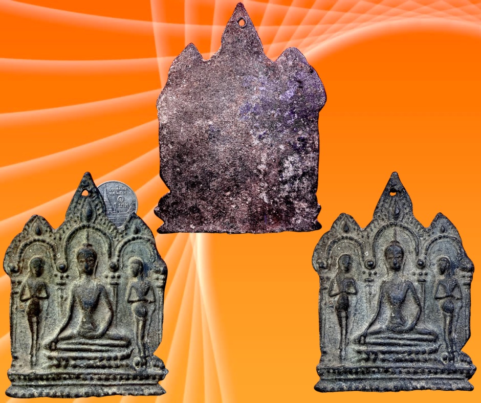 พระโมคคัลลาน์-สารีบุตร เนื้อชินเงิน พระพิมพ์นี้มีขึ้นมาสองกรุ ๆ วัดราชบูรณะ อยุธยา และกรุวัดท้าวโคตร นครศรีธรรมราช แต่วัดท้าวโคตรเนื้อชินเงินจะหนากว่าของวัดราชบูรณะ องค์ที่นำมาเสนอนี้ได้มาจากนครศรีธรรมราชเมื่อปี 2524 (ยุทธการไต้ร่มเย็น) พิจารณาแล้วไม่หนาและไม่บาง น่าจะเป็นของกรุวัดท้าวโคตรมากว่ากรุวัดราช ฯ ซะแล้ว ขนาด 6.5 x 9.0 ซม. พระมีรอยตอกห้อยข้างฝา 2,000.- บาทครับ.