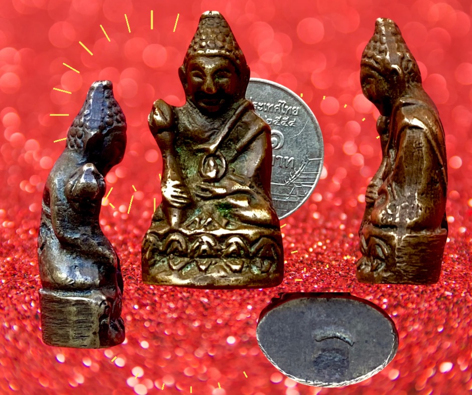 พระกริ่งถือดอกบัวหลังยันต์ วัดประสาทบุญญาวาส กทม. ปี 2506 ขนาด 1.5 x 3.5 ซม. เป็นพิมพ์พิเศษหลังสองยันต์อีกหนึ่งพิมพ์ที่พบน้อยและหายาก หลายท่านอาจไม่รู้จัก 1,000.- บาทครับ.