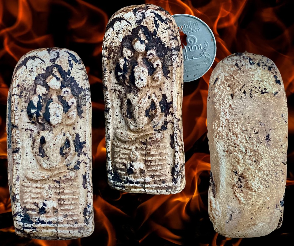พระกรุวัดนางตรา นครศรีธรรมราช เป็นพระเนื้อดินเผาผสมว่าน ศิลปะลพบุรี อายุประมาณกว่า 1,800 ปี องค์ที่นำมาเสนอนี้เป็นพระพิมพ์นาคปรกคล้ายพิมพ์ของวัดมุมป้อมปี 2497-98 แต่องค์นี้ไม่ใช่ดินเป็นเนื้อผงเก่าโซนพระสมเด็จ ฯ นิมนต์ท่านมาจากนครศรีธรรมราชเมื่อปี 2524 (ยุทธการไต้ร่มเย็น) ไม่ทราบท่านมาจากวัดไหนและเกจิย์องค์ใดท่านสร้างไว้ หรือจะเป็น…”พระผงทัพข้าวยุคสอง” สภาพสมบูรณ์ 1,000.- บาทครับ.