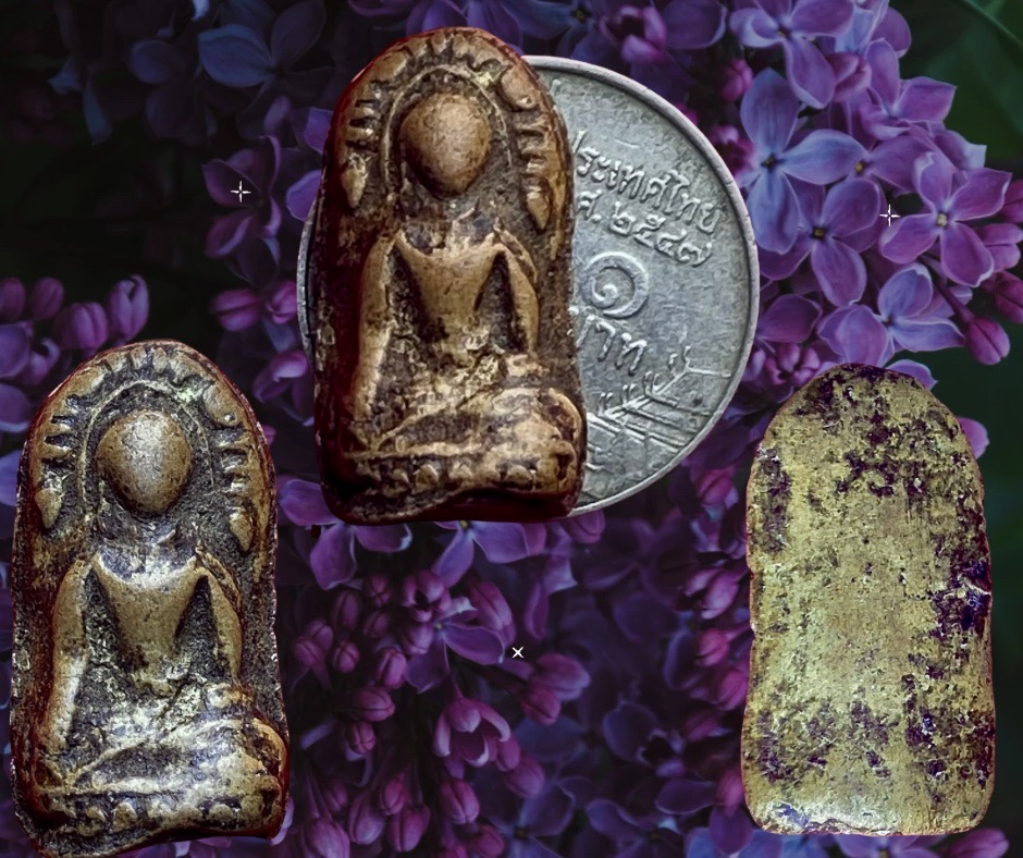 พระรอดหัวข่วง เชียงใหม่ ขุดพบที่วัดแสนเมืองมาพร้อมกับพระรอดบังไพรเมื่อปี 2493 ขนาด 1 x 2 ซม. เริ่มหายากใกล้เป็นตำนานแล้ว 1,100.- บาทครับ.