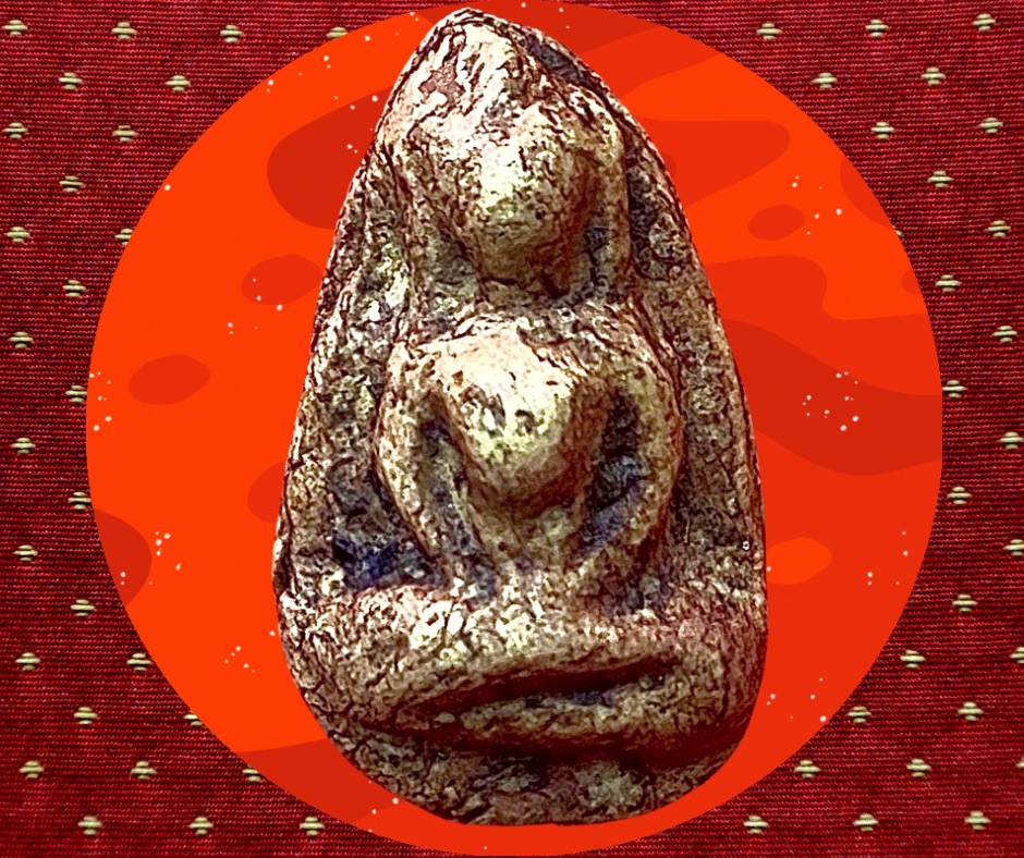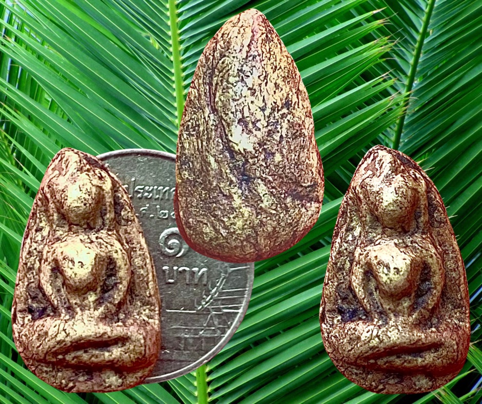 พระกรุวัดอัมพวา ธนบุรี (กทม.) สมเด็จพระพุทธโฆษาจารย์ (ฤทธิ์) อดีตเจ้าอาวาสวัดอรุณราชวรารามเป็นผู้สร้างด้วยผงชื่อ “ผงกลับศัตรูเป็นมิตร” แล้วบรรจุไว้ในเจดีย์หลังโบสถ์เมื่อคราวปฏิสังขรณ์วัดอัมพวาประมาณปี 2450 จำนวนมากกว่า 50 พิมพ์ ปี 2484 เกิดสงครามอินโดจีน พระครูแป้นได้เปิดกรุนำพระจำนวนหนึ่งออกแจกทหารและชาวบ้านเพื่อคุ้มภัย องค์ที่นำมาเสนอนี้เป็นพิมพ์เข่ากว้าง สภาพสมบูรณ์คราบกรุจับเต็ม หน้า-หลัง ขนาด 1.3 X 2.3 ซม. 700.- บาทครับ.