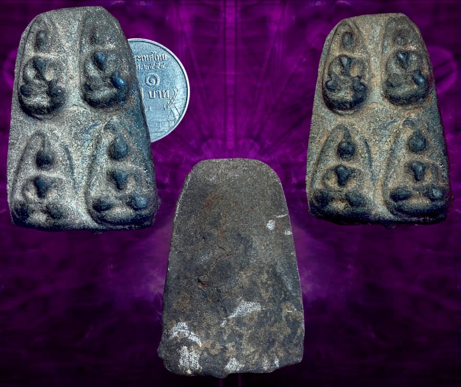 พระพิจิตรเม็ดข้าวเม่าพิมพ์เกศคตแขนกลมเนื้อชินแข็ง พิจิตร องค์นี้เป็นพระแผงสี่องค์หลังลายผ้าละเอียดสภาพสมบูรณ์ ขนาด 2.8 x 4.2 ซม. 1,200.- บาทครับ.