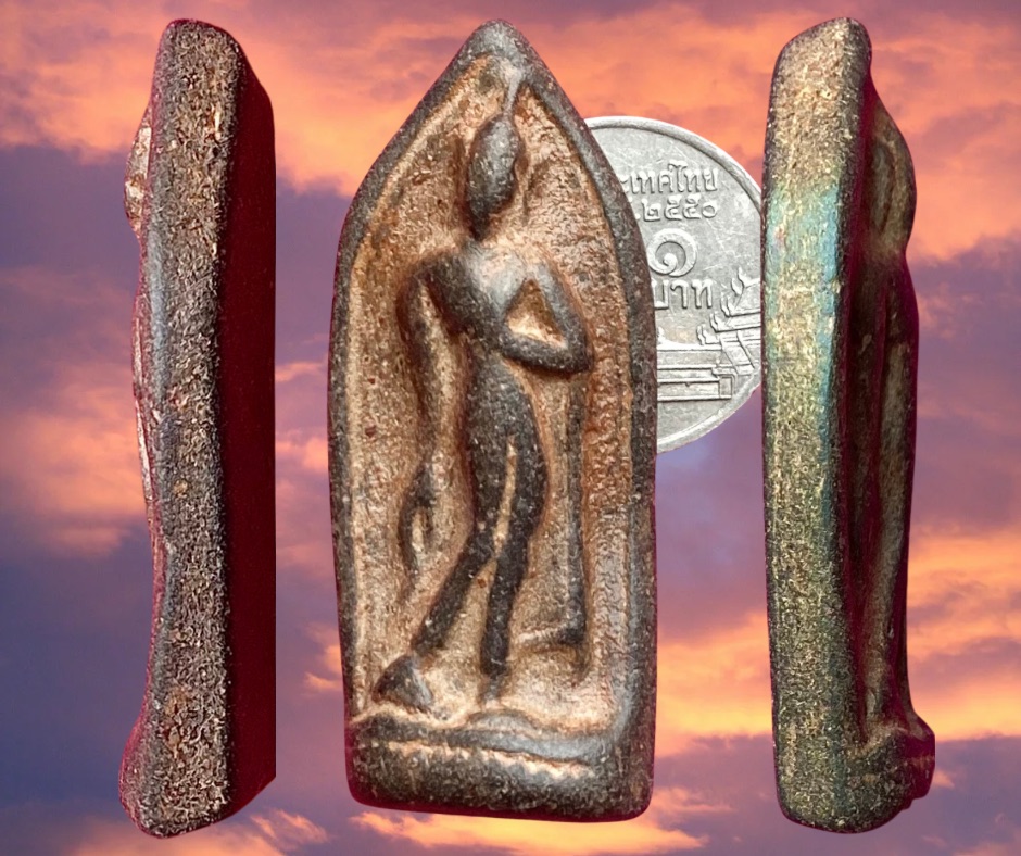 พระกำแพงขาวที่เป็นเนื้อชินเงิน และชินเขียวจะสร้างบรรจุเป็นครั้งแรก ส่วนเนื้อดินเป็นพระที่สร้างบรรจุทีหลังพระเนื้อชิน องค์ที่นำเสนอนี้เป็นเนื้อดินขึ้นที่กรุวัดพิกุล ขนาด 2 x 4.5 ซม. สภาพสวยเดิมจากกรุ 2,000.- บาทครับ.