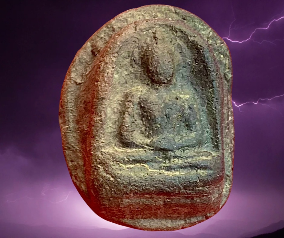 พระกำแพงซุ้มกอกรุหน้าศูนย์ (กรุกระทิงแดง) กำแพงเพชร เป็นพระยุคกลางประมาณไม่เกิน 300 ปี บริเวณกรุอยู่เยื้อง ๆ จากลานทุ่งเศรษฐีเล็กน้อย คนส่วนมากไม่รู้จักเลยเหมารวมเป็นพระในลานทุ่งเศรษฐีหมด องค์นี้เป็นพิมพ์ใหญ่ไม่ตัดปีก เจ้าของเก็บมาจากกรุเก็บไว้บนหิ้งเพิ่งบินลงมา ขนาด 2.5 x 3.2 ซม. 1,500.- บาทครับ.