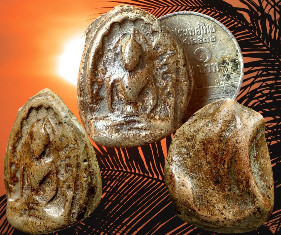 พระกำแพงซุ้มกอพิมพ์กลางหลังหยิบกรุวัดพิกุล กำแพงเพชร พระกำแพงซุ้มกอ ขุดพบในวัดพระบรมธาตุ วัดพิกุล วัดฤาษี และวัดต่าง ๆ ในลานทุ่งเศรษฐี พบหลักฐานการสร้างบนแผ่นเงินจารึกไว้ในกรุพระเจดีย์วัดพระบรมธาตุเมืองนครชุม โดยพระมหาธรรมราชาลิไทเมื่อครั้งเป็นผู้ปกครองเมืองซากังราวก่อนที่จะได้รับการสถาปนาเป็นกษัตริย์องค์ที่ 5 แห่งราชวงศ์สุโขทัยโดยฤาษีผู้มีฤทธิ์ 3 ตนคือ.- ฤาษีพิราลัย ฤาษีตาไฟ และฤาษีตาวัว เป็นผู้นำในการสร้างพระกำแพงซุ้มกอ มวลสารเป็นพระเนื้อดินผสมว่าน 108 และเกสรดอกไม้ …องค์ที่นำมาเสนอนี้เป็นพระซุ้มกอพิมพ์กลางเนื้อแก่ว่านของกรุวัดพิกุลในลานทุ่งเศรษฐี ขนาด 2.0 x 2.5 ซม. 2,000.- บาทครับ.