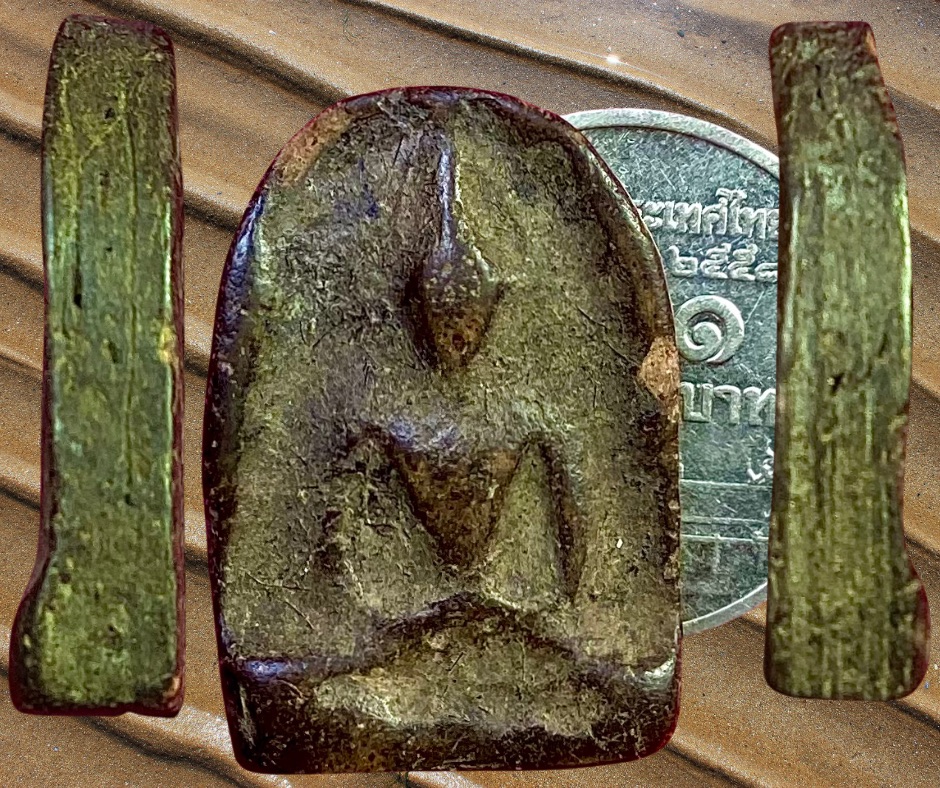 พระกำแพงซุ้มกอพิมพ์กลางกรุวัดซุ้มกอ กำแพงเพชร เป็นพระศิลปะสุโขทัยยุคต้น สร้างประมาณปี 1900 ขุดพบหลายกรุ ครั้งแรกพบที่วัดพระบรมธาตุ เมื่อครั้งสมเด็จพระพุฒาจารย์ (โต) ขึ้นไปเยี่ยมญาติที่กำแพงเพชร และพบอีกเมื่อปี 2490 และ 2501 แต่ไม่มาก ปี 2505 และ 2509 พบที่กรุวัดพิกุล วัดฤาษี วัดหนองลังกา และวัดซุ้มกอ …องค์ที่นำมาเสนอนี้เป็นพิมพ์กลางมีรอยกะเทาะที่ขอบซุ้มเล็กน้อย ขนาด 1.5 x 2.5 ซม. 1,200.- บาทครับ.