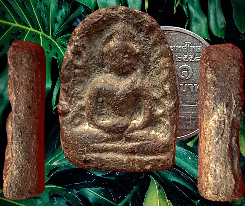 … พระซุ้มกอกรุฤาษีสร้างบรรจุเป็นกรุแรกต่อมาจึงสร้างบรรจุที่กรุพระบรมธาตุเป็นกรุที่สอง และอีกประมาณสี่สิบปีจึงสร้างบรรจุที่กรุวัดพิกุลเป็นกรุที่สาม องค์ที่นำมาเสนอนี้ขนาด 2.0 x 2.8 ซม. สภาพเดิมจากผู้นำมาจากกรุ ไว้เป็นองค์ครูได้ครับ. 3,000.- บาทครับ.