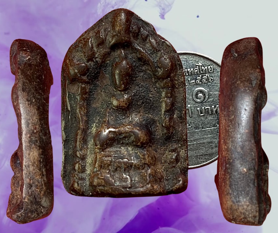 … ส่วนเนื้อดินมีทั้งเนื้อค่อนข้างหยาบและเนื้อละเอียดนุ่ม มีหลังเรียบและหลังเบี้ย พระซุ้มยอมีสองขนาด เล็ก และ ใหญ่ (ขนาดต่างกันเล็กน้อย) พบหลายกรุในฝั่งทุ่งเศรษฐี และฝั่งเมือง กรุที่นิยมมากกว่ากรุอื่น ๆ คือ กรุวัดพิกุลและกรุวัดพระบรมธาตุ องค์นี้กรุวัดพระบรมธาตุพิมพ์เล็กผิวเนื้อช้ำเน่ามาจากกรุ สภาพสมบูรณ์ ขนาด 2 x 3 ซม. 1,500.- บาทครับ.