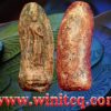 … ตำรารุ่นเก่ากล่าวไว้ว่า พระกำแพงพลูจีบพบที่…กรุวัดพระบรมธาตุ กรุวัดพิกุล และกรุคลองไพร จำนวนน้อยมาก ถ้าเป็นเนื้อชินพบที่…วัดพระบรมธาตุและวัดพระแก้ว …ปัจจุบันนี้ขยายเขตที่พบในทุ่งเศรษฐีเพิ่มขึ้นมาอีกมี …วัดน้อยบ้านไร่ วัดเจดีย์กลางทุ่ง ฯลฯ ฝั่งเมืองมี…วัดพระแก้ว วัดป่ามืด วัดเชิงหวาย ฯลฯ ……พระกำแพงพลูจีบมีสองพิมพ์ ฐานเตี้ยกับฐานสูง ราดำน้อย นุ่งกางเกงจีนเอวต่ำ องค์ที่นำเสนอนี้เป็นพิมพ์กลางฐานสูงขึ้นที่กรุ …?…สภาพสมบูรณ์ ขนาด 1.3 x 4.0 ซม. 1,500.- บาทครับ.