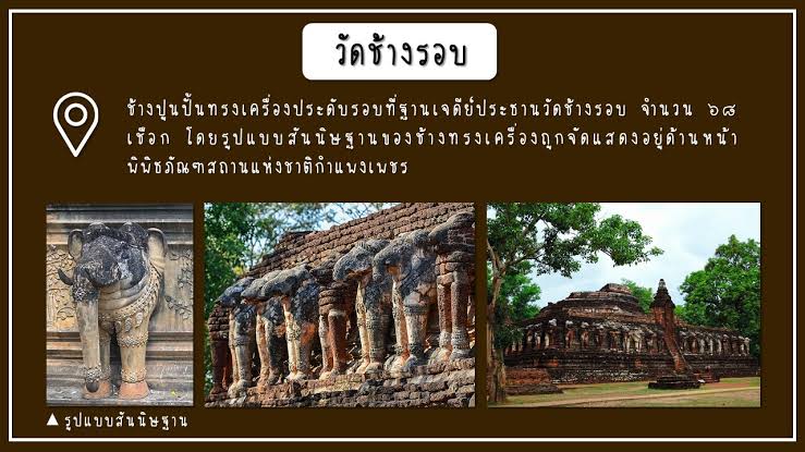 พระกำแพงลีลาพลูจีบกรุวัดช้างรอบ กำแพงเพชร วัดช้างรอบเป็นวัดใหญ่ที่สุดตั้งอยู่บนเนินเขาลูกรังนอกกำแพงเมือง มีพระเจดีย์ใหญ่ฐานสี่เหลี่ยมตั้งอยู่กลางลาน ที่ฐานเจดีย์ประดับรูปช้างปูนปั้นครึ่งตัวเห็นแต่หัวและ 2 ขาหน้าโผล่ออกมาจากฐานรายรอบเจดีย์ เป็นช้างทรงเครื่องจำนวน 68 เชือก พระที่พบในกรุวัดช้างรอบคือ.-