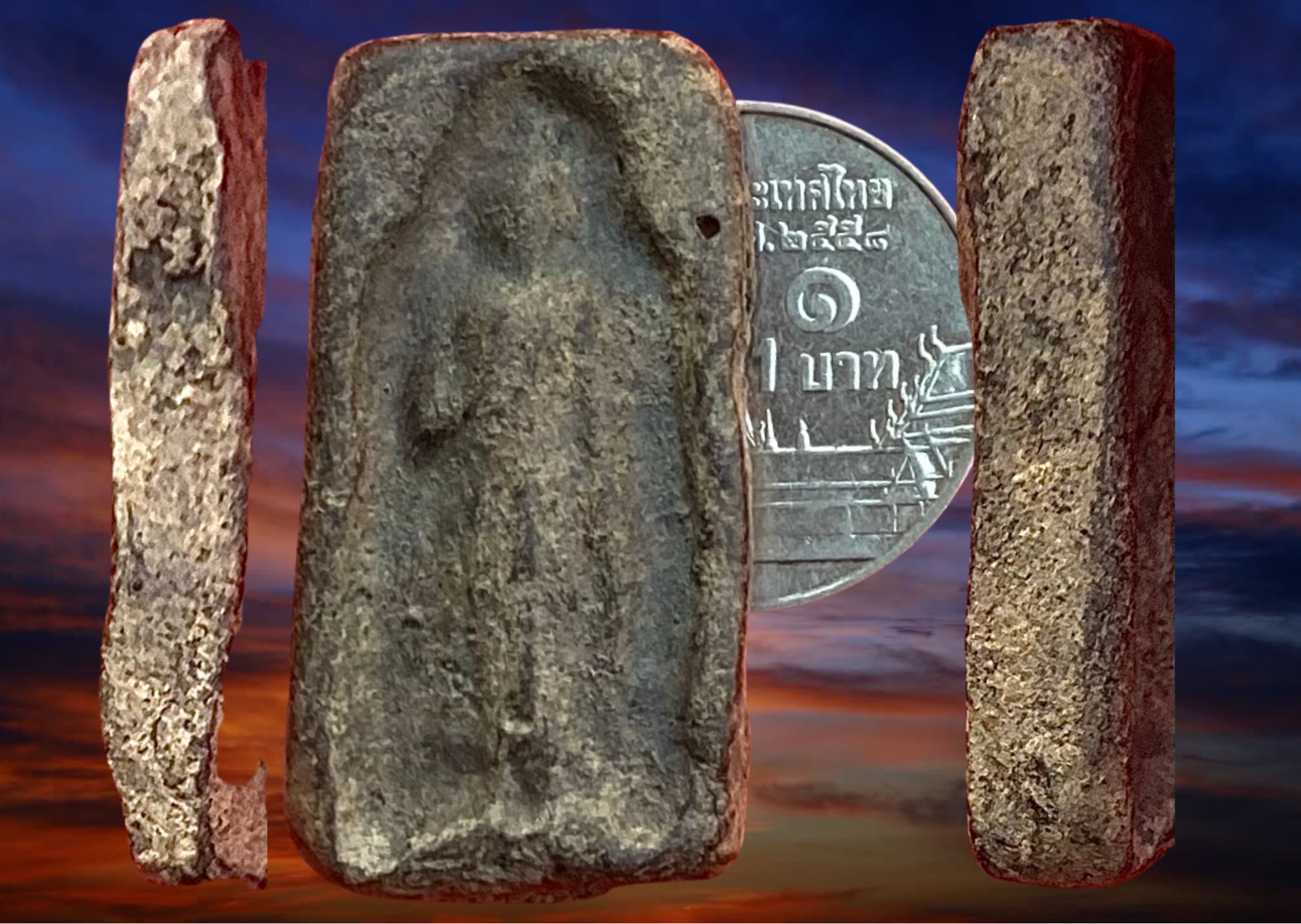 พระกำแพงหน้าอิฐกรุวัดพระบรมธาตุ กำแพงเพชร พระกำแพงหน้าอิฐเป็นพระในตระกูลกำแพงเพชรที่หาได้ยากอีกพิมพ์หนึ่งพบที่กรุวัดพระบรมธาตุจำนวนน้อยมาก ส่วนที่กรุอื่น ๆ ทั้งฝั่งทุ่ง ฯ และฝั่งจังหวัด ฯ ไม่มีท่านใดยืนยันว่าพบหรือไม่ ลักษณะเป็นพระยืนประธานพรในซุ้มเรียบและลีก องค์นำมาเสนอนี้ ขนาด 1.7 x 3.3 ซม. สภาพสมบูรณ์มาเดิมจากกรุ 2,000.- บาทครับ.