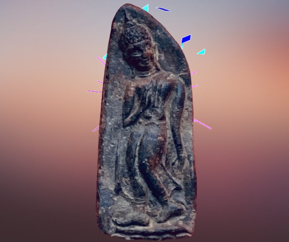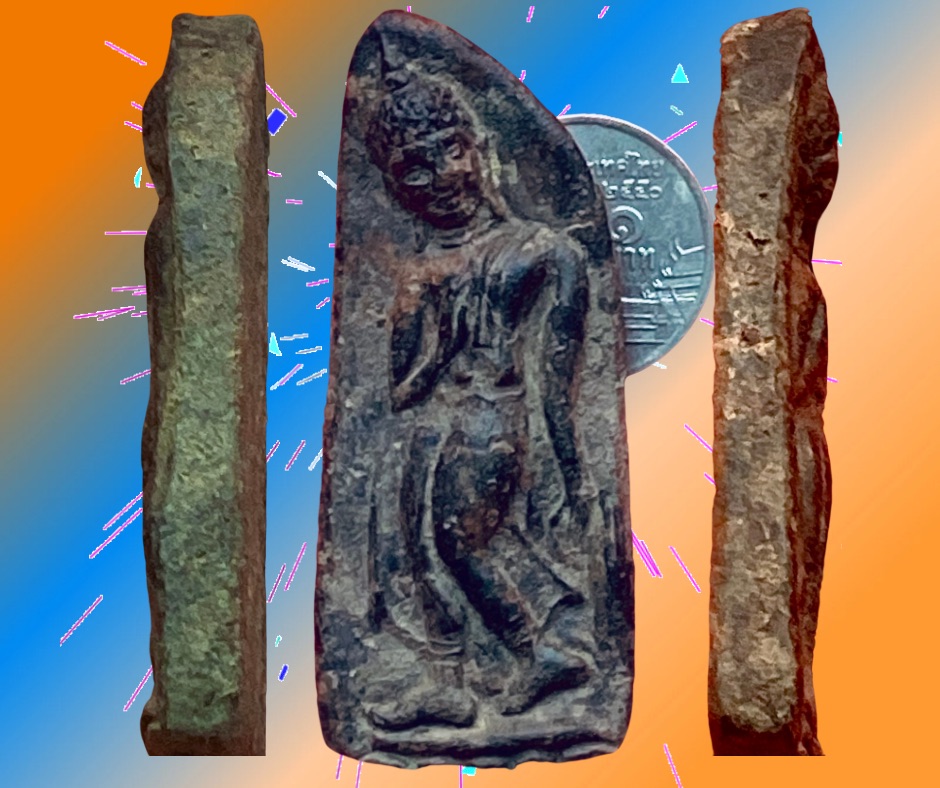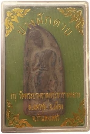พระกำแพงลีลาเนื้อดินปางฝักดาบ กรุวัดพระบรมธาตุ กำแพงเพชร
