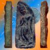 พระพิมพ์ที่คล้ายกันนี้ถ้าเป็นเนื้อชินเงินจะขึ้นที่กรุวัดมหาธาตุ เพชรบูรณ์ ส่วนเนื้อดินมีหรือเปล่าไม่ทราบ ปัจจุบันฝักดาบพิมพ์นี้หาชมได้ยากแล้ว องค์นี้เก็บรักษาไว้ดี หู ตา ปาก จมูก ครบสมบูรณ์ ขนาด 2.2 x 5.5 ซม. 2,200.- บาทครับ.