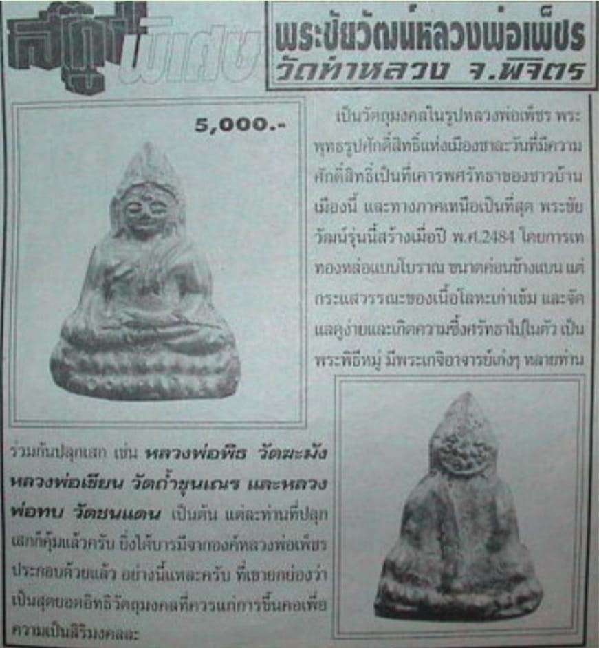 พระชัยวัฒน์เนื้อดินหลวงพ่อเพชร วัดท่าหลวง พิจิตร