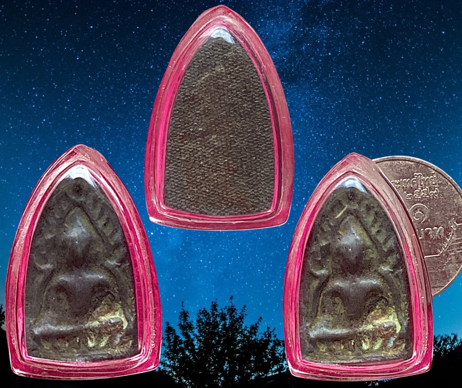 ชินราชใบมะยมเนื้อชินเงินกรุลั่นทม วัดพระศรีรัตนมหาธาตุวรมหาวิหาร พิษณุโลก พระพุทธชินราชใบมะยมเป็นพระที่แตกกรุภายในวัดพระศรี ฯ (วัดใหญ่) บริเวณใต้ต้นพิกุล โดยการสันนิฐานว่าผู้สร้างน่าจะสร้างพร้อมกับพระชินราชใบเสมา, พระชินสีห์, และพระศาสดา ฯ ของกรุวัดพระศรี ฯ พุทธคุณเช่นเดียวกับพระชินราชใบเสมา : พระพิมพ์นี้มีขึ้นที่กรุวัดราชบูรณะ อยุธยาด้วย และหลวงพ่อขัน วัดนกกะจาบก็ได้สร้างไว้เมื่อปี 2475-2480 ก็มี ปัจจุบันพิมพ์นี้พบน้อยแล้ว องค์นี้สภาพสมบูรณ์ ขนาด 1.5 x 2.5 ซม. 1,500.- บาทครับ.