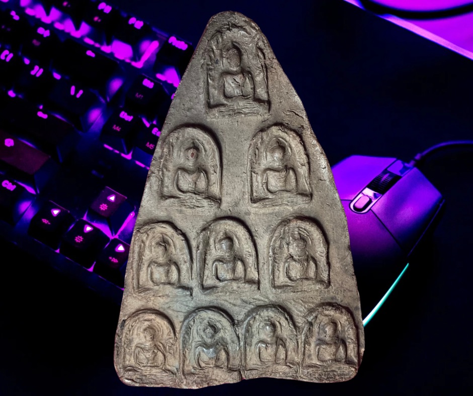 พระกำแพงซุ้มกอแผงกรุวัดกะโลทัย (ฝั่งเมือง) กำแพงเพชร พระซุ้มกอแผงเท่าที่ทราบมีสองกรุ ๆ วัดตะแบกลายและกรุวัดกะโลทัย วัดตะแบกลายเนื้อจะหยาบกว่าวัดกะโลทัย ในแผงจะมีพระซุ้มกอนั่ง 3 บ้าง 5 บ้าง 7 บ้าง 9 องค์บ้าง แผงที่นำมาเสนอนี้ท่านนั่งมา 10 องค์ (สิบทัศน์) สภาพ สวย สมบูรณ์ ขนาด 6.5 x 9.0 ซม. 1,000.- บาทครับ.