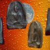 พระกำแพงซุ้มกอพิมพ์กลาง กรุวัดพิกุล กำแพงเพชร พระกำแพงซุ้มกอ ขุดพบในวัดพระบรมธาตุ วัดพิกุล วัดฤาษี และวัดต่าง ๆ ในลานทุ่งเศรษฐี พบหลักฐานการสร้างบนแผ่นเงินจารึกไว้ในกรุพระเจดีย์วัดพระบรมธาตุเมืองนครชุม โดยพระมหาธรรมราชาลิไทเมื่อครั้งเป็นผู้ปกครองเมืองซากังราวก่อนที่จะได้รับการสถาปนาเป็นกษัตริย์องค์ที่ 5 แห่งราชวงศ์สุโขทัยโดยฤาษีผู้มีฤทธิ์ 3 ตนคือ.- ฤาษีพิราลัย ฤาษีตาไฟ และฤาษีตาวัว เป็นผู้นำในการสร้างพระกำแพงซุ้มกอ มวลสารเป็นพระเนื้อดินผสมว่าน 108 และเกสรดอกไม้ …องค์ที่นำมาเสนอนี้เป็นพระซุ้มกอพิมพ์กลางเนื้อแก่ว่านของกรุวัดพิกุลในลานทุ่งเศรษฐี ขนาด 1.5 x 2.5 ซม. 2,000.- บาทครับ.