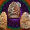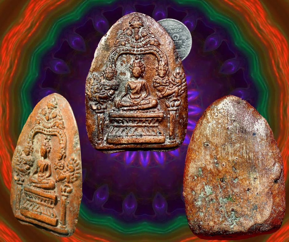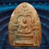 พระซุ้มหน้าบรรณคอระฆังกรุวัดอรัญญิก พิษณุโลก ตั้งตามซื่อวัดที่กรุแตกวัดแรกคือ “วัดอรัญญิก” อยู่ห่างจากตัวเมืองพิษณุโลกประมาณหนึ่ง กม. สร้างขึ้นในสมัยสุโขทัยยุคปลาย กรุแตกครั้งแรก ปี 2450 และอีกหลายครั้ง ปี 2496 เป็นการเปิดกรุครั้งใหญ่ มีเนื้อดินและเนื้อชิน องค์นี้เนื้อดินพิมพ์หน้าบรรณขึ้นจากกรุมาน้อยกว่าพิมพ์อรัญญิก สภาพสมบูรณ์สวยคมชัด ขนาด 4.5 x 6.0 ซม. 1,500.- บาทครับ.