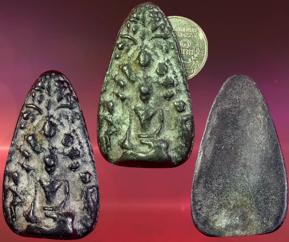 พระนาคปรกช่อคันไถกรุวัดมหาธาตุ สุโขทัย เป็นพระนาคปรกเจ็ดเศียรปางมารวิชัยบนเศียรของนาคปรกจะมีช่อดอกไม้ลักษณะคล้ายเป็นรูป “คันไถ” ของชาวนาปรกคลุมอยู่ นักสะสมยุคแรกจึงเรียกว่า “พระนาคปรกช่อคันไถ” ตามประวัติเล่าว่าแตกกรุออกมาเป็นเนื้อชินเงินไม่เกิน 50 องค์ ด้านหลังเป็นหลังตันและหลังลายผ้า องค์ที่นำมาเสนอองค์นี้หลังตันสภาพสมบูรณ์ ขนาด 2.8 x 5.0 ซม. 1,700.- บาทครับ.