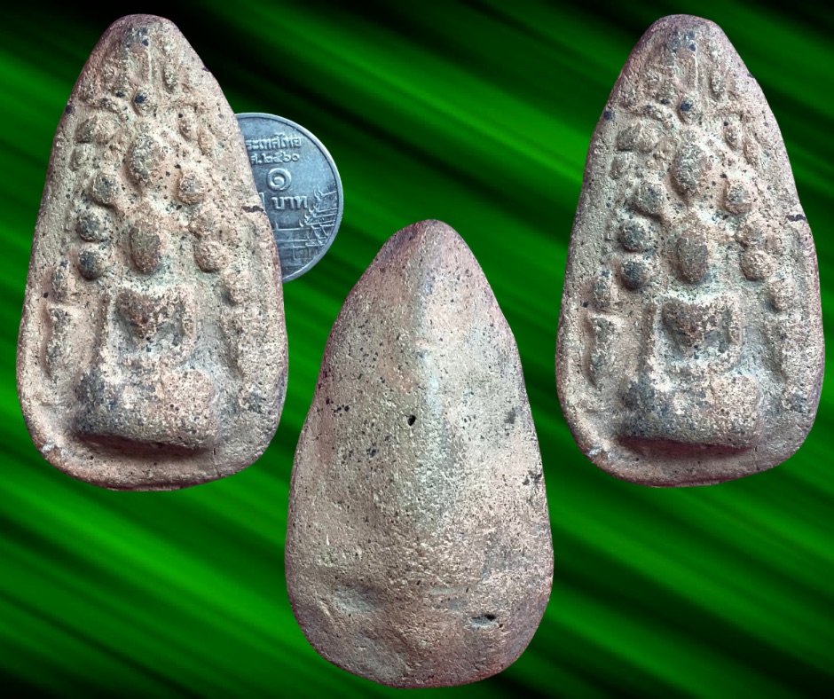 พระนาคปรกช่อคันไถกรุวัดมหาธาตุ สุโขทัย เป็นพระนาคปรกเจ็ดเศียรปางมารวิชัยบนเศียรของนาคปรกจะมีช่อดอกไม้ลักษณะคล้ายเป็นรูป “คันไถ” ของชาวนาปรกคลุมอยู่ นักสะสมยุคแรกจึงเรียกว่า “พระนาคปรกช่อคันไถ” ตามประวัติเล่าว่าแตกกรุออกมาเป็นเนื้อชินเงินไม่เกิน 50 องค์ ด้านหลังเป็นหลังตันและหลังลายผ้า แต่องค์ที่นำมาเสนอองค์นี้เป็นเนื้อดินเผาสภาพสมบูรณ์เก่ามาจากกรุ ขนาด 3 x 5 ซม. 1,500.- บาทครับ.