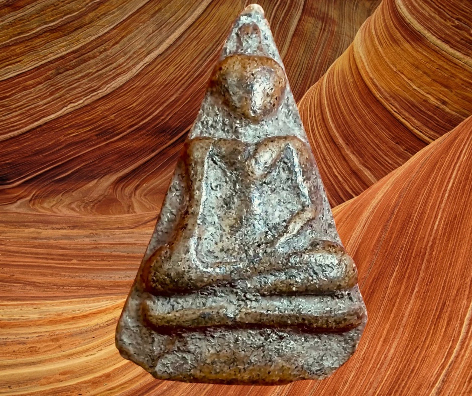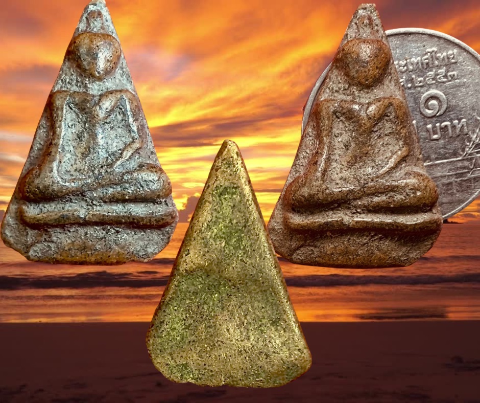 พระนางกำแพงพิมพ์เศียรโตกรุวัดพิกุล กำแพงเพชร พระมหากษัตริย์กรุงสุโขทัยเป็นผู้อำนวยการสร้างโดยช่างชาวกำแพงเพชร เป็นผู้ออกแบบ “ศิลปะสุโขทัย” นำบรรจุตามกรุพระเจดีย์ในวัดต่าง ๆ บริเวณลานทุ่งเศรษฐี อายุถึงปัจจุบันราว 600 กว่าปีเปิดกรุครั้งแรกที่วัดพระบรมธาตุ ต่อมาจึงเปิดที่กรุวัดพิกุลหลังจากเปิดวัดพระบรมธาตุไม่กี่ปี องค์ที่นำมาเสนอนี้มาเดิมจากกรุ มีเนื้อเกินไต้ฐานเพิ่มความสง่างาม ขนาด 1.8 x 2.5 ซม. 1,700.- บาทครับ.