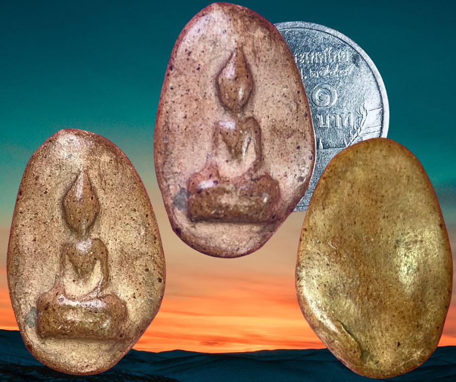 พระนางกำแพงอู่ทองพิมพ์เล็กเนื้อดินไม่ตัดปีก กรุวัดพระบรมธาตุ กำแพงเพชร บางท่านเรียกพระอู่ทองกลีบบัว สภาพสมบูรณ์ ขนาด 1.5 x 2.5 ซม. 800.- บาทครับ.