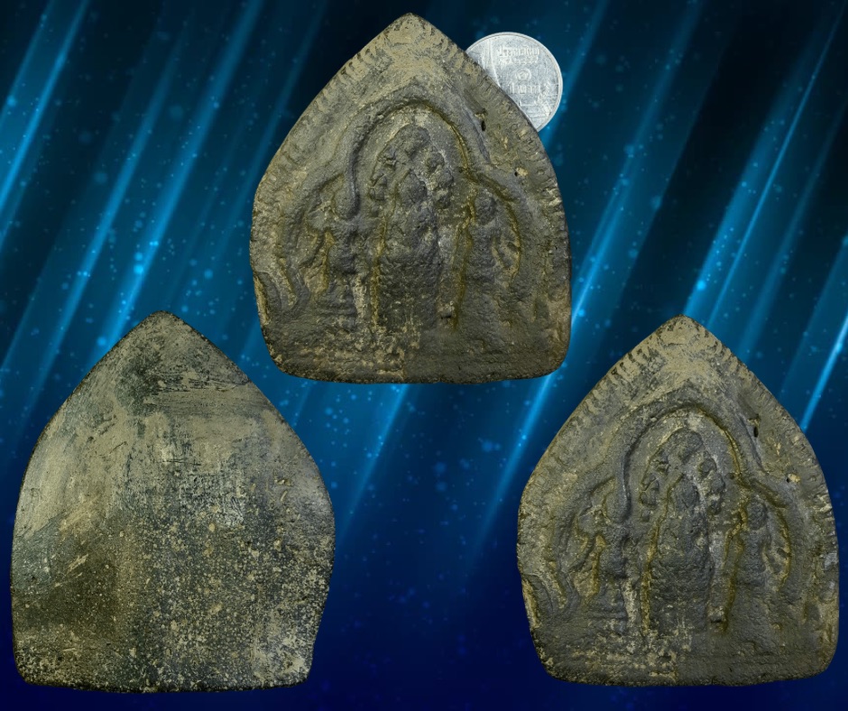 เตาทุเรียงหมายถึงเตาเผา ถ้วย ชาม สังคโลก ในสมัยสุโขทัย พบกระจายอยุ่ในเขตเมืองเก่าและศรีศัชนาลัย พระกรุเตาทุเรียงก็คือพระที่ทำในบริเวณที่เป็นเตาเผาจึงเรียกว่าพระกรุเตาทุเรียง พระเครื่องกรุนี้เป็นพระดินเผาที่แกร่งที่สุดเพราะถูกเผาด้วยเตาที่มีความร้อนสูงทำให้พระมีเนื้อหาออกไปทางกระเบื้องถ้วยดินเผา องค์ที่นำมาเสนอนี้เป็นพระเนื้อดินพิมพ์ใหญ๋ขึ้นมาจากกรุสภาพเดิม ๆ หย่อนความสวย ขนาด 5.5 x 6.5 ซม.ประกันแท้ 2,300.- บาทครับ. ประวัติพระกรุเตาทุเรียง พระกรุเตาทุเรียง เมืองศรีสัชนาลัย มีการกล่าวถึงครั้งแรกในหลักศิลาจารึกของ พ่อขุนรามคำแหงมหาราช โดยในครั้งอดีตนั้น ชาวเมืองศรีสัชนาลัย เป็นช่างที่มีฝีมือในการทำเครื่องปั้นดินเผาที่เรียกว่า เครื่องสังคโลก ได้ดี ทั้งยังเป็นแหล่งผลิตและส่งออกไปค้าขายในอาณาจักรสุโขทัยและดินแดนไกล เครื่องสังคโลกนี้ปัจจุบันก็ยังผลิตอยู่ ต่อมาเมื่อเจ้าหน้าที่ของกรมศิลปากรได้เข้าไปสำรวจโบราณสถาน รวมทั้งมีการขุดปรับแต่งพื้นที่โบราณสถานต่างๆ ภายในเมืองศรีสัชนาลัย ตั้งแต่ พ.ศ.๒๔๙๗ เพื่อเตรียมจะขึ้นทะเบียนเป็นโบราณสถาน ทำให้พบแหล่งเตาเผา และเศษซากเครื่องสังคโลกโบราณที่จมดินอยู่สองฟากริมแม่น้ำยมพบเตาเผาต่างๆ เป็นจำนวนมากกว่า ๒๐๐ เตา ที่เขตบ้านป่ายาง บ้านเกาะน้อย บ้านหนองอ้อ และบริเวณวัดดอนลาน ส่วนใหญ่มีลักษณะเป็นเนินดินคล้ายจอมปลวกขนาดใหญ่ดินที่ทับถมสูงประมาณ ๒๔ เมตร บริเวณดังกล่าวเป็นเตาทุเรียงที่เผาเครื่องสังคโลกที่สำรวจพบอย่างเป็นทางการ เตาที่มีสภาพค่อนข้างสมบูรณ์มีมากถึง ๒๑ เตา ในบริเวณบ้านป่ายาง บนฝั่งตะวันตกของแม่น้ำยม เหนือแก่งหลวง อยู่ใกล้เมืองเก่าศรีสัชนาลัย ห่างจากกำแพงเมืองประมาณ ๕๐๐ เมตร เตาที่พบนั้นแบ่งออกเป็น ๒ กลุ่ม คือ กลุ่มเตายักษ์ เป็นกลุ่มเตาที่อยู่ใกล้เมืองศรีสัชนาลัย มีเตาตั้งเรียงรายกันอยู่ ๑๕ เตา เป็นเตาที่เผาเครื่องถ้วยชาม และประติมากรรมลอยตัวขนาดใหญ่ รวมทั้งเครื่องประดับสถาปัตยกรรมต่างๆ เช่น ยักษ์ เทวดา มังกร ช่อฟ้า เตายักษ์ เป็นชื่อที่ชาวบ้านเรียกตามรูปประติมากรรมยักษ์สังคโลก ที่พบบริเวณเตาเหล่านี้ กลุ่มเตาตุ๊กตา เป็นกลุ่มเตาเผาที่อยู่ห่างจากกลุ่มเตายักษ์ออกมาทางทิศเหนือ ประมาณ ๖๐๐ เมตร พบซากเตา ๖ เตา กลุ่มเตาบริเวณนี้ผลิตประติมากรรมลอยตัวขนาดเล็ก ทั้งรูปคน และสัตว์ ลักษณะโครงสร้างของเตาเป็นเตาประทุน มีรูปทรงรี ก่อหลังคาโค้ง บรรจบกันคล้ายประทุนเรือ ตั้งอยู่บนพื้นลาดเอียง ๑๐-๓๐ องศา ภายในเตาแบ่งออกเป็น ๓ ส่วน คือ ช่