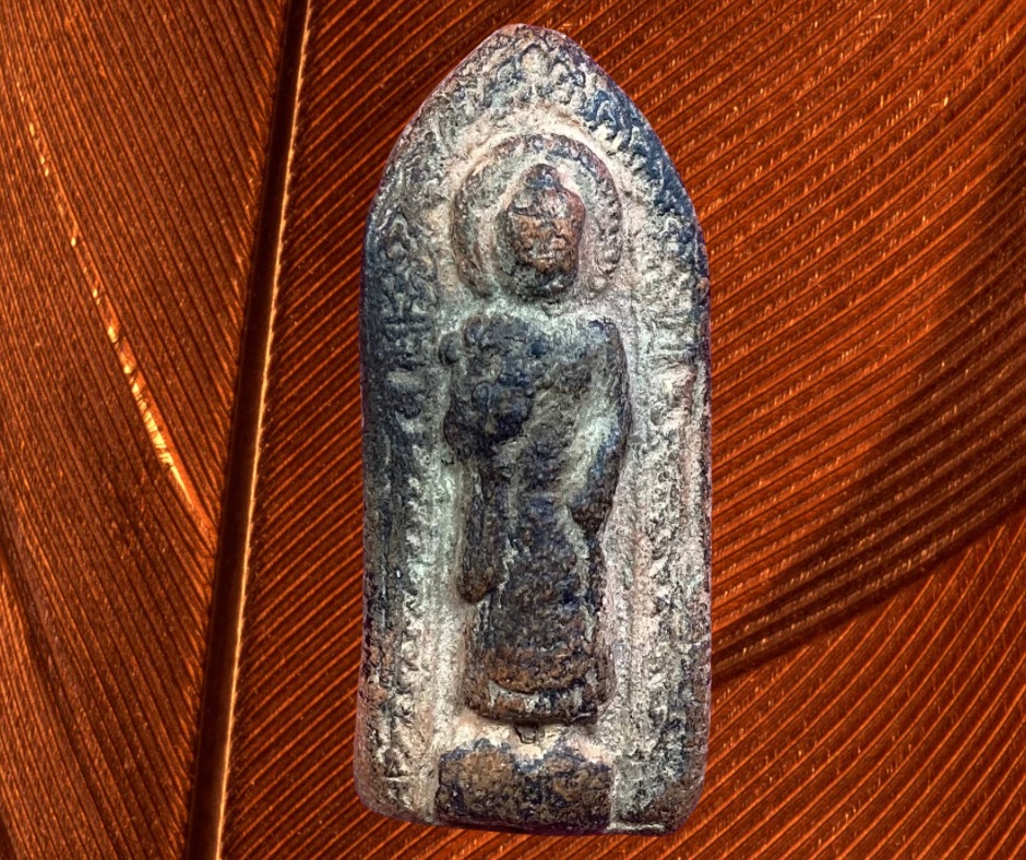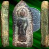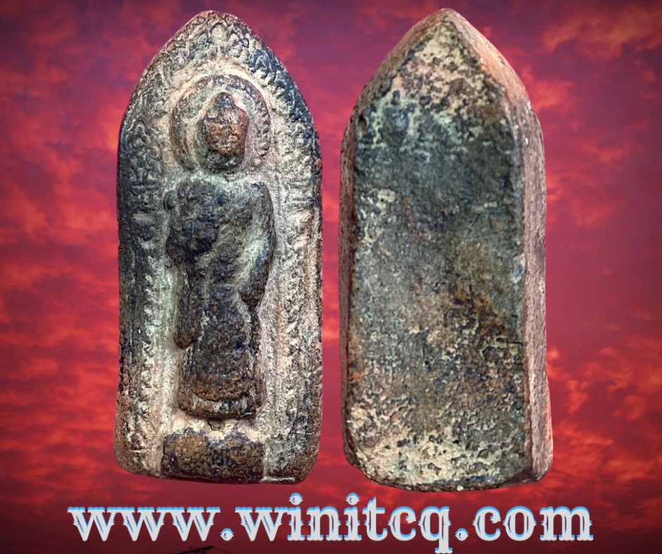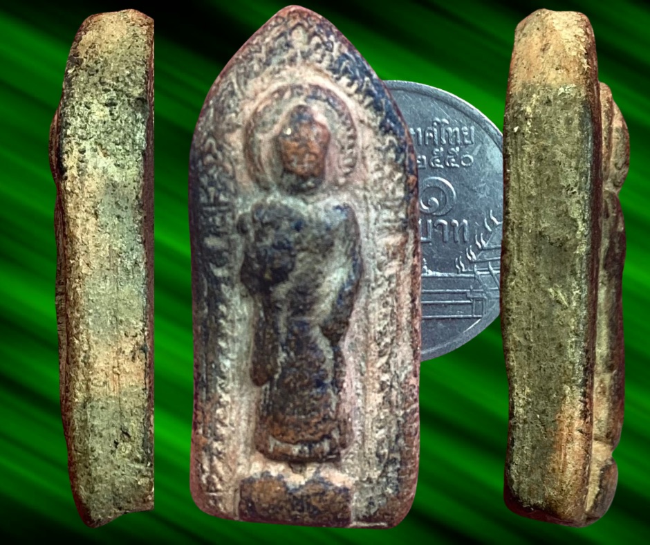 พระทวาราวดีปางประทานพรเนื้อดินกรุวัดธุตังฆาราม เพชรบูรณ์ ตามประวัติวัดสร้างประมาณปี 2360 กรุพระที่พบเป็นศิลปะทวาราวดีตอนปลาย ในปี 2530 เศษ ๆ หลวงพ่อประเทืองเจ้าอาวาสวัดหนองย่างหอยได้มาจำพรรษาที่วัดนี้ได้นิมิตว่าใกล้ ๆ ต้นโพธิ์ด้านทิศตะวันออกของโบสถ์มีสิ่งศักดิ์สิทธิ์ฝังอยู่ เจ้าอาวาสและกรรมการมีมติจ้างคนงานและชาวบ้านมาขุดดินบริเวณนี้ก็ได้พบไหดินภายในไหบรรจุพระกรุมากมายหลายไห หลายพิมพ์ หลายขนาด หลายเนื้อ ส่วนใหญ่ที่พบเป็นเนื้อดินเผา เนื้อโลหะ เนื้อตะกั่ว เทวรูป … มีคราบกรุทุกองค์ ๆ องค์ที่นำมาเสนอพิมพ์นี้แทบจะไม่มีหมุนเวียนในสนาม สภาพสมบูรณ์ขนาด 1.5 x 3.5 ซม. 500.- บาทครับ.