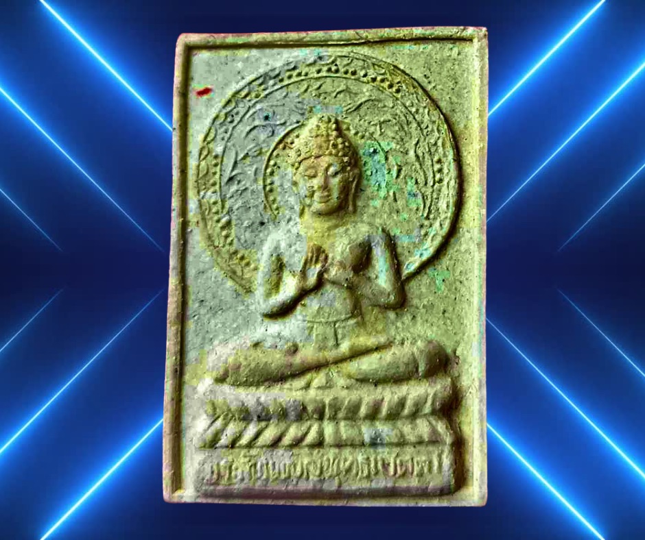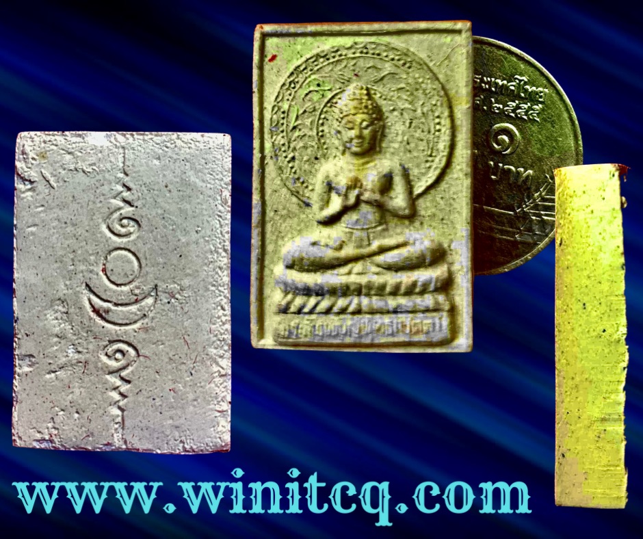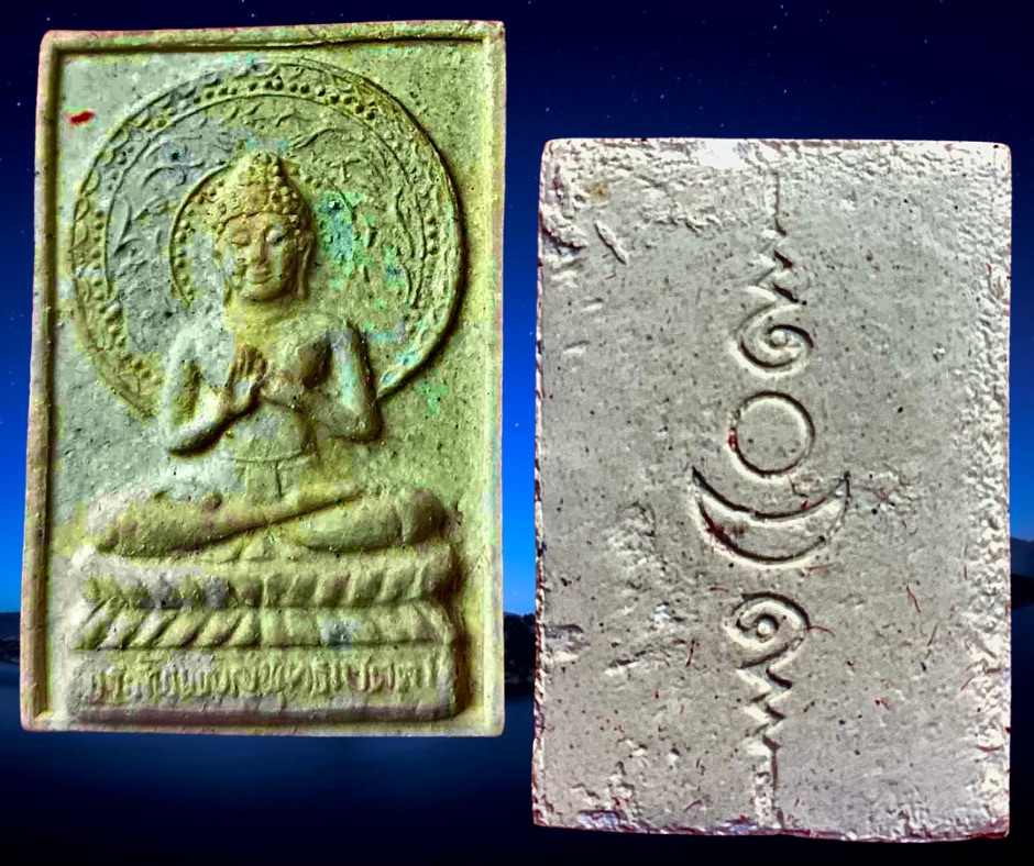 พระพุทธรูปเนื้อผงนั่งปางประธานพร วัดป่าโนนม่วง อุดรธานี งานฝังลูกนิมิตรปี 2534 หลวงปู่บุญจันทร์ วัดป่าสันติกาวาส (ศิษย์พระอาจารย์มั่น) ประธานพุทธาภิเษก พร้อมกับเหรียญรุ่น 2 ของท่าน (10,000 เหรียญ) ขนาด 1.7 x 2.5 ซม. 250.- บาทครับ.