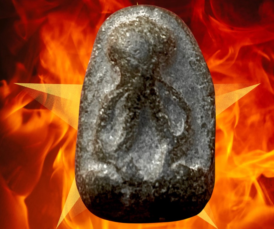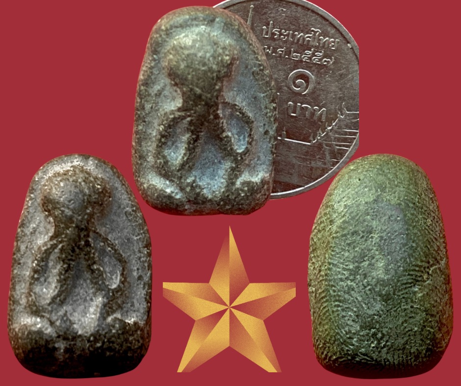 พระปิดทวารผงกระดูกผีเนื้อเทาดำแก่ผงพุทธคุณ วัดโพธิ์ท่าเตียน ( วัดพระเชตุพนวิมลมังคลาราม ) กทม. พระอาจารย์หนูเกจิย์ ฯ สายเขมรสร้างขึ้นในราวปี 2484 – 2485 จากกระดูกผี 7 ป่าช้า ผงพระพุทธคุณ ผงอิทธิเจและว่านอาถรรพ์ต่าง ๆ ประสบการณ์ผู้บูชา.- ดีทางคงกระพัน ให้โชคในการเสี่ยงการพนันขันต่อเสี่ยงดวง ว่าให้โชคให้ลาภดีนัก และที่ขึ้นชื่อเล่าขานกันตั้งแต่ครั้งเก่าก่อนจนถึงปัจจุบันว่า ถ้ามีพระผงกระดูกผีไว้ที่บ้านจะไม่มีขโมยขึ้นบ้าน “เพราะจะเห็นในบ้านมีคนอยู่ตลอดเวลา” แต่ถ้าใส่ไว้ในรถยนต์ รถจะไม่มีวันหาย ด้วยประสบการณ์นี้จึงเป็นที่ต้องการไม่ใช่เฉพาะคนไทยแต่ยังโด่งดังไปถึงต่างประเทศ ทั้งสิงคโปร์และฮ่องกง องค์ที่นำเสนอพิมพ์นี้พบน้อยสภาพสมบูรณ์ ขนาด 1.5 x 2.5 ซม. 900.- บาทครับ.
