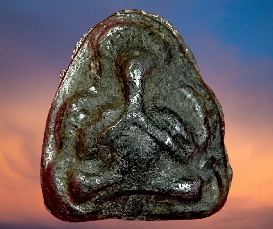 พระปิดตาพิมพ์พุงป่องใหญ่หลังเบี้ยหลวงปู่ศุข วัดปากคลองมะขามเฒ่า ชัยนาท พระปิดตาพิมพ์นี้จะพบเห็นแต่เนื้อผงคลุกรัก น้อยมากที่จะพบเนื้อชิน องค์นี้เป็นเนื้อชินเงินจากชาวบ้านในพื้นที่ ตามประวัติ … พระปิดตารุ่นนี้ท่านสร้างเพื่อแจกเป็นที่ระลึกงานศพโยมมารดาของท่านเมื่อปี 2462 ฌาปนกิจศพปี 2463 มีสองพิมพ์ ๆ พุงป่องเล็กและพุงป่องใหญ่ องค์นี้เป็นพิมพ์ป่องใหญ่เนื้อชินเงินสวยสมบูรณ์ ขนาด 1.7 x 2.0 ซม. 2,000.- บาทครับ.