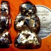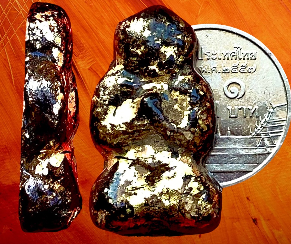 หนุมานอาสาเนื้อผงพุทธคุณผสมว่านพระปลัดทองดี วัดท่าเกวียน นนทบุรี ผู้ที่ได้รับการขนานนามว่า “ผู้ชนะสิบทิศ” ท่านสำเร็จวิชาจากหลวงพ่อแช่ม วัดตาก้องตั้งแต่ยังเป็นเณร กล่าวกันว่าท่านสร้างในช่วงปี พ.ศ. 2460-80 วัดท่าเกวียน วัดสพานสูง วัดศาลากุล อยูู่ระแวกเดียวกัน คนละฝั่งแม่น้ำ ท่านจึงเป็นสหธรรมิกกับหลวงปู่กลิ่น วัดสะพานสูง และหลวงพ่อสุ่น วัดศาลากุล การสร้างหนุมานของท่านนั้นเชื่อกันว่าผงคลุกรักนี้ได้มาจากหลวงพ่อกลิ่น วัดสะพานสูง แล้วผสมกับว่านมงคลของท่านเอง หนุมานของท่านมีสองพิมพ์ (ใหญ่, เล็ก) ที่เคยพบจะมีเนื้อผงว่านยา จุ่มรักปิดทอง เนื้อว่านสบู่เลือด จุ่มรักปิดทอง เนื้อชานหมากหรือเนื้อว่านยา อานุภาพด้านป้องกันภัย คงกระพันชาตรี เมตตามหานิยม มหาเสน่ห์ แคล้วคลาดคงกระพัน ขนาด 1.5 x 2.7 ซม. 1,500.- บาทครับ.
