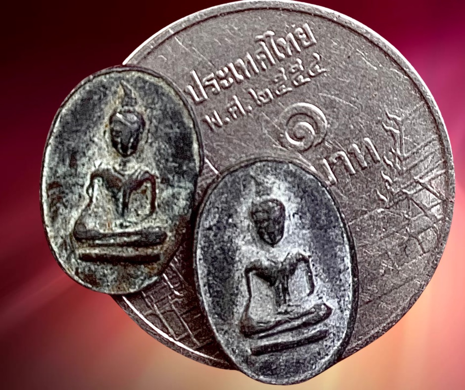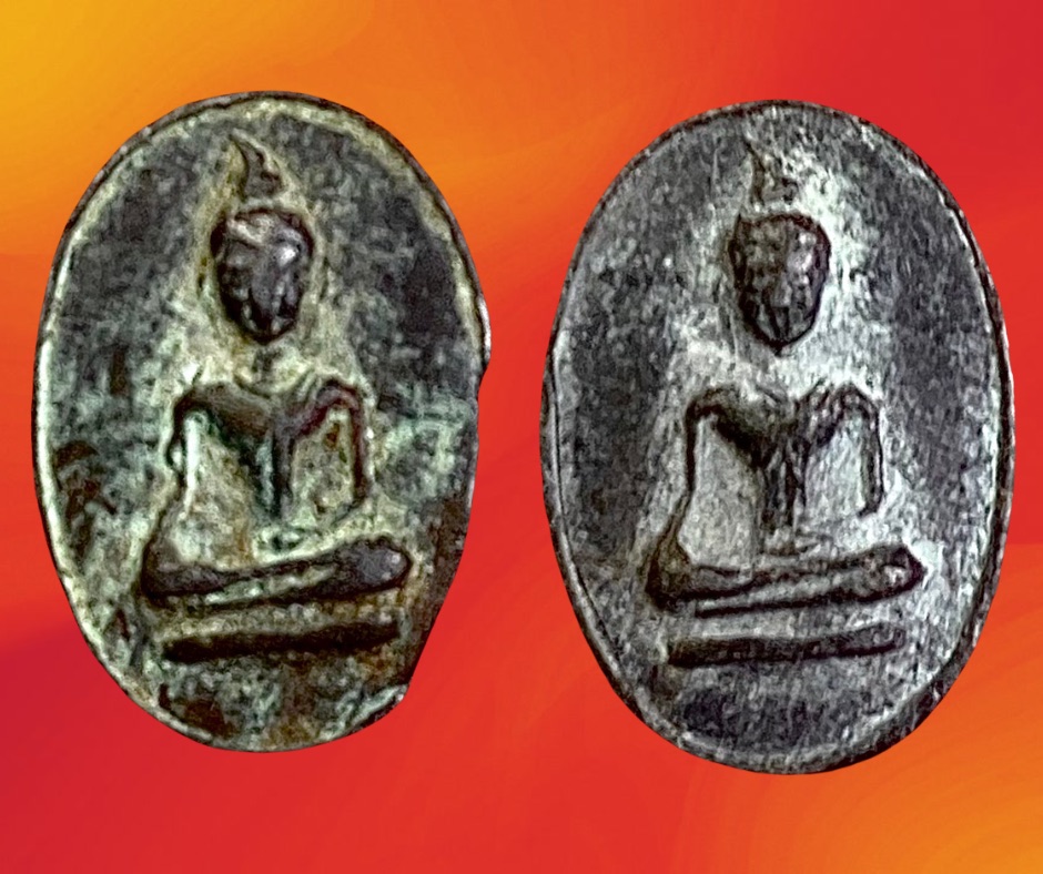 หลวงพ่อทวีพระเกจิผู้เรืองวิทยาคมแห่งเมืองพิจิตรท่านนำพระเมืองพิจิตรที่ชำรุดแตกหักมารวมหลอมขึ้นใหม่มากมายหลายพิมพ์ลักษณะคล้ายกันกับเม็ดข้าวเม่าซึ่งเป็นพระเก่าของเมืองพิจิตร แล้วปลุกเสกขึ้นใหม่ราวปี 2498 เป็นพระปั้มหลังลายผ้า ขนาด 0.8 x 1.2 ซม. 350.-บาท (สององค์) ครับ.
