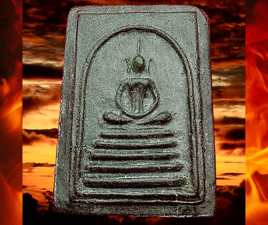 พระพิมพ์สมเด็จฐาน 5 ชั้นเนื้อน้ำมันผสมผงใบลานหลวงพ่อกวย วัดโฆสิตาราม ชัยนาท
