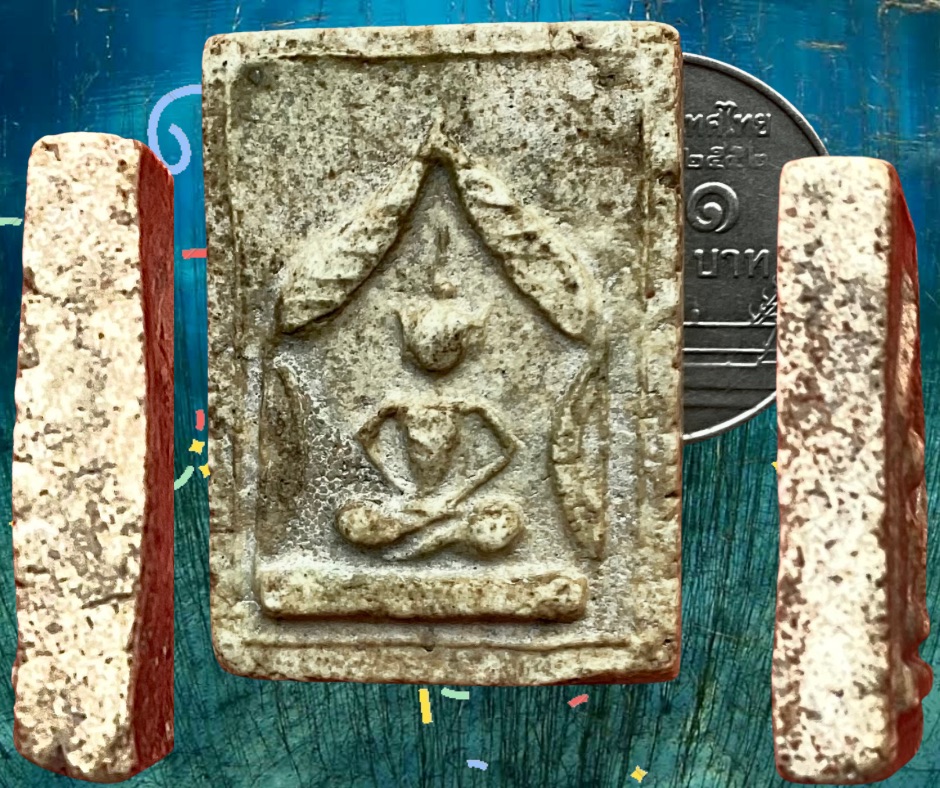 พระเนื้อผงน้ำมันปี 2484 พิมพ์แหวกม่านหลวงพ่อแฉ่ง วัดบางพัง นนทบุรี ขนาด 2.2 x 3.2 ซม. สภาพหย่อนงาม 500.- บาทครับ.