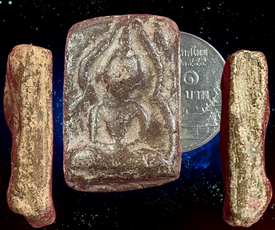 พระขุนแผนหน้าค่ายพิมพ์สมาธิฐานไม่มีบัวหลวงพ่อโหน่ง วัดคลองมะดัน (วัดอัมพวัน) สุพรรณบุรี พระองค์นี้เป็นอีกพิมพ์หนึ่งในกลุ่มพิมพ์โบราณของท่านที่หาชมได้ยาก ก่อนที่จะพัฒนามาเป็นพิมพ์ฐานมีบัว มีหน้ามีตาสวยงามขึ้น ขนาด 2 x 3 ซม. เป็นพระมือสองผ่านการใช้มาหนัก เนื้อเข้มขลัง 600.- บาทครับ.