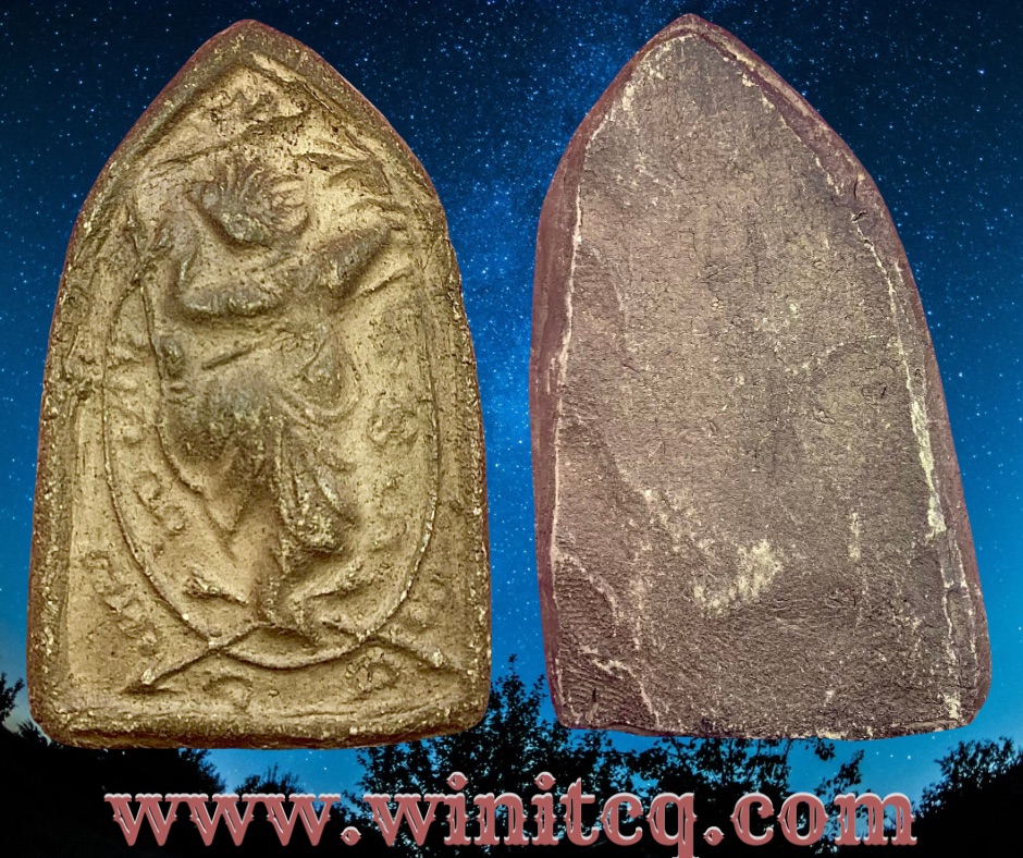 หนุมานหักศรเนื้อดินเผาปี 2517 หลวงพ่อกวย วัดโฆสิตาราม ชัยนาท หนุมานรุ่นนี้มีลูกศิษย์สร้างมาถวายหลวงพ่อกวยท่านแจกเองบ้างเพียงเล็กน้อยส่วนใหญ่มอบให้หลวงปู่ตี๋นำมาแจกที่วัดเขาเขียว สุพรรณบุรีเพื่อร่วมทำบุญสร้างวัด หลวงปู่ตี๋ท่านเป็นศิษย์สายตรงหลวงพ่อกวย เป็นบุตรบุญธรรมของหลวงพ่ออิ่ม วัดหัวเขา และเป็นศิษย์หลวงพ่อมุ่ยวัดดอนไร่ หลวงพ่อจวน วัดไก่เตี้ย หลวงปู่เย็น วัดสระเปรียญ หลวงปู่บุดดา วัดกลางชูศรี หนุมาณหักศรมีเนื้อดิน เนื้อผง เนื้อชิน ด้านหลังเรียบและด้านหลังจาร องค์นำเสนอเป็นเนื้อดินหลังเรียบ ขนาด 3.5 x 5.5 ซม. สร้างน้อยจึงหายากค่านิยมสูง 1,000. บาทครับ.