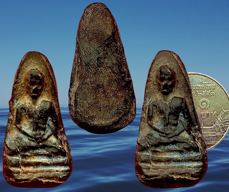 พระรูปเหมือนครูบาเจ้าศรีวิชัยรุ่นอัฐิหลังย่น วัดจามเทวี ลำพูน เป็นพระเนื้อดินเผาผสมเถ้าอัฐิครูบาเจ้า ฯ ด้านหลังพระไม่เรียบตึงจึงเรียกหลังย่น มีผู้บันทึกไว้ว่าสร้างเมื่อ 22 พ.ย. 2489 จนถึงปี 2491 ถือเป็นรุ่นที่ 1 มีพระครูประสาสน์สุตาคม เป็นประธานจัดสร้าง สำหรับรุ่นที่ 2 นั้น สร้างเมื่อ 15 เม.ย.2496 และยังมีสร้างอีกครั้งเมื่อ 2505 โดยครูบาททึม พรหมเสน นับเป็นรุ่นที่ 3 ซึ่งรุ่นนี้ใต้ฐานองค์พระจะเจาะรูบรรจุเส้นเกศาครูบาเจ้าศรีวิชัยไว้ รุ่นสุดท้ายสร้างปี 2511 โดยปรากฏอักษรปั๊ม วัดจามเทวี เป็นเครื่องหมาย ทุกรุ่นขนาดใกล้เคียงกัน มีสี ขาว เขียว เหลือง แดง ดำ เทา (สีเข้มขนาดจะย่อมกว่าพบน้อยกว่า) องค์นี้เนื้อสีดำรุ่นแรกหลังรอยลายมือกดลึก ขนาด 1.5 3.0 ซม. สภาพสมบูรณ์ 800.- บาท