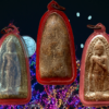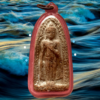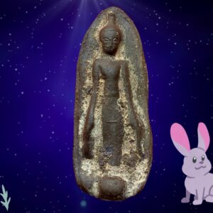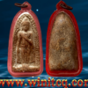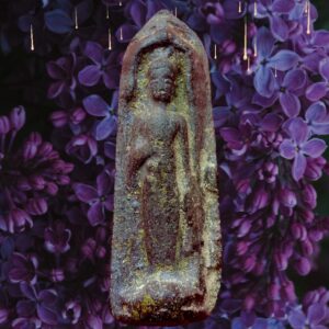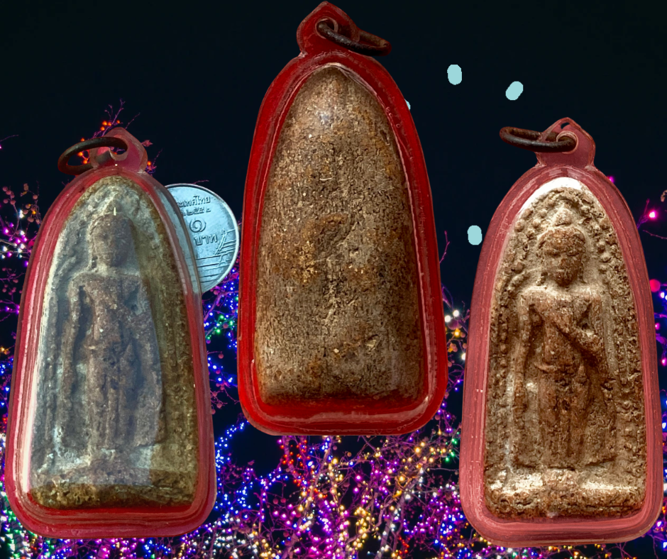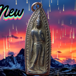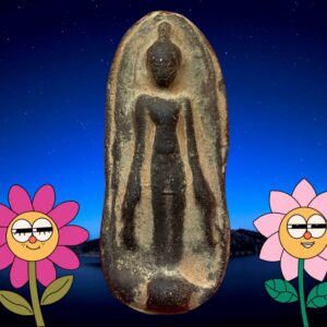พระร่วงยืนประทานพร กรุวัดทัพเข้า (กรุวัดทับข้าว) สุโขทัย เป็นพระเนื้อผงหรือดินผสมผงที่มีอายุุเก่าแก่กว่าพระเนื้อผงชนิดอื่น ๆ ในประเทศไทย พิมพ์ค่อนข้างตื้น เนื้อแห้งผากและออกฟู ๆ บางองค์ปรากฏ คราบกรุบาง ๆ เป็นสีเหลือง ๆ เด่นทางเมตตามหานิยม แคล้วคลาด สันนิษฐานว่าเป็นพระที่สร้างขึ้นประมาณปลายกรุงสุโขทัยหรืออยุธยาตอนต้น พระกรุนี้พบเพียงครั้งเดียวไม่เกิน 500 องค์ เมื่อประมาณปี 2480 พบพิมพ์พระร่วงยืน พระปางลีลา กับพระร่วงนั่ง องค์นำมาเสนอนี้เป็นพระร่วงยืนปางห้ามไม้แก่นจันทน์ ถึงยุคถึงสมัย เลี่ยมกันน้ำไว้สี่สิบกว่าปี ขนาด 3.0 x 5.5 ซม. 2,000.- บาทครับ.