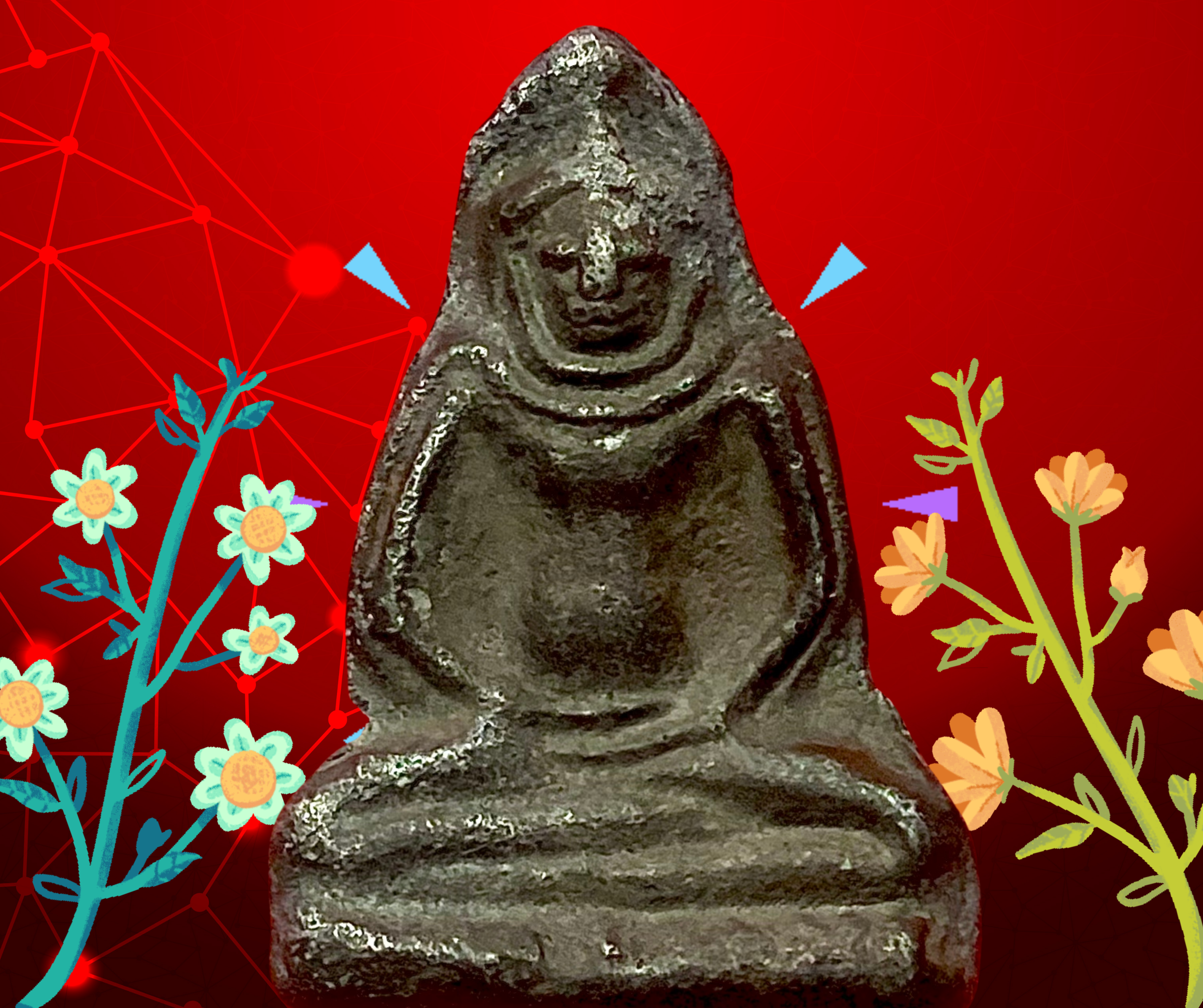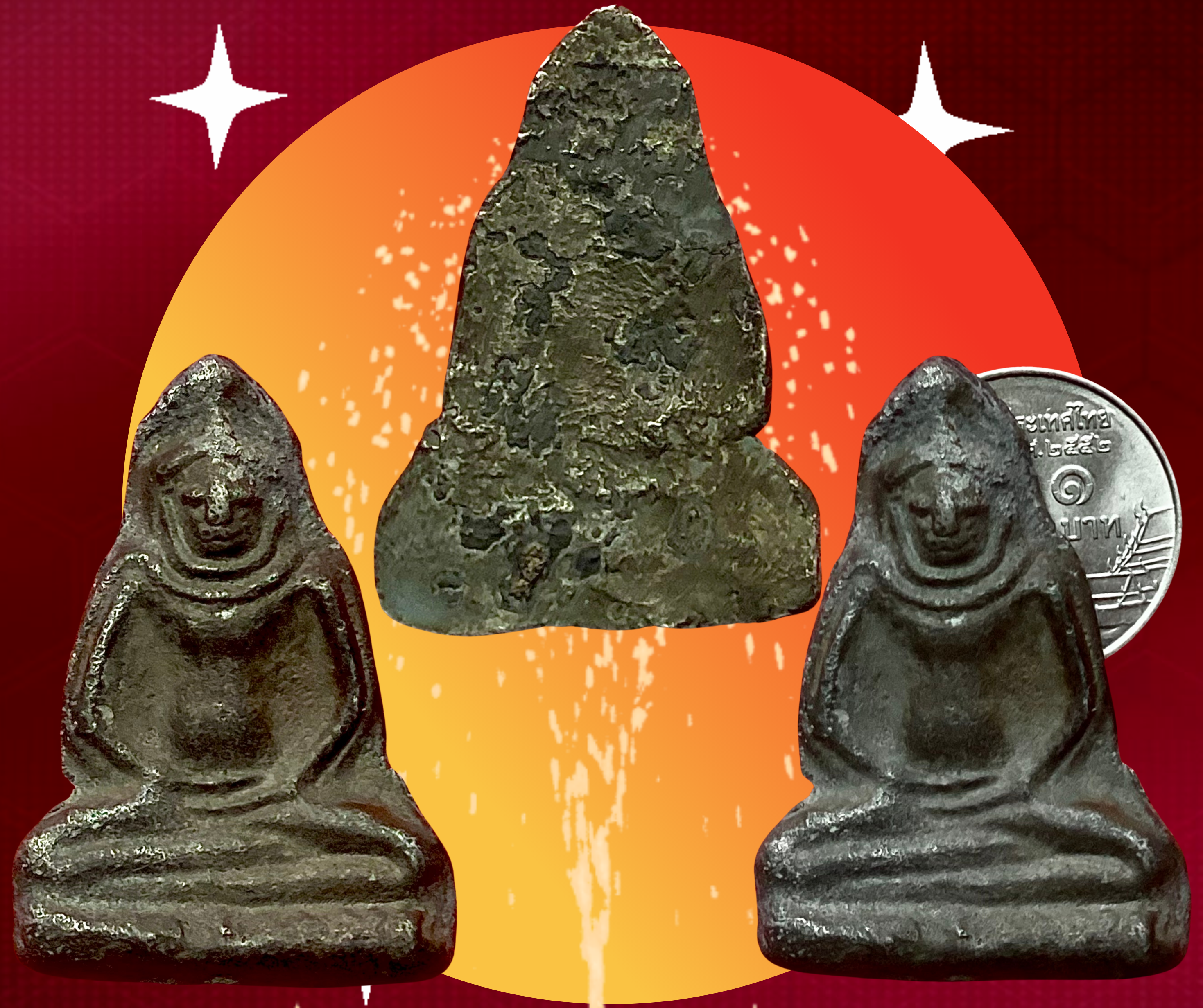 พระร่วงนั่งคางเคราเนื้อชินเงินกรุบางขลัง สุโขทัย บางขลังเป็นเมืองโบราณเก่าแก่ แตกกรุเมื่อ พ.ศ.2509 โดยชาวบ้านช่วยกันงัดแผ่นศิลาแลงออกจากฐานพระเจดีย์ พบไหบรรจุพระเครื่องจำนวน 9 ไห มีหลายพิมพ์ส่วนมากเป็นเนื้อชินเงิน และเนื้อดิน เนื้อชินตะกั่วสนิมแดงพบน้อยมาก พระร่วงนั่งคางเคราพบสามพิมพ์ ๆ ใหญ่ พิมพ์กลาง และพิมพ์อกแมงดา ..ชาวบ้านแถวนั้นเรียกพระพิมพ์นี้ว่าพระร่วงหน้ายักษ์คางเครา พุทธคุณพระกรุบางขลังโดยรวมเขาว่าดีทุกด้านแต่เน้นหนักด้านแคล้วคลาด …องค์ที่นำมาเสนอนี้เนื้อชินเงินสภาเดิมจากกรุ ขนาด 3 x 4 ซม. 1,500.- บาทครับ.
