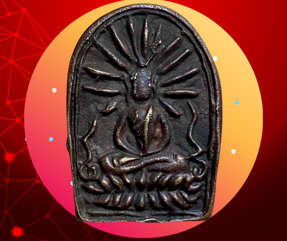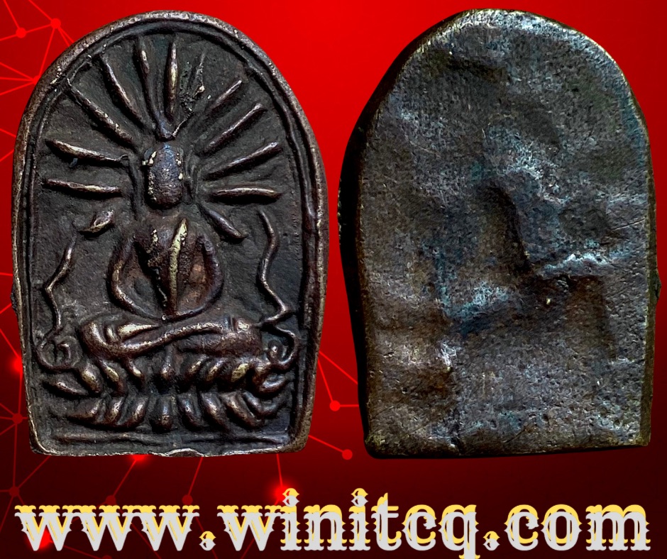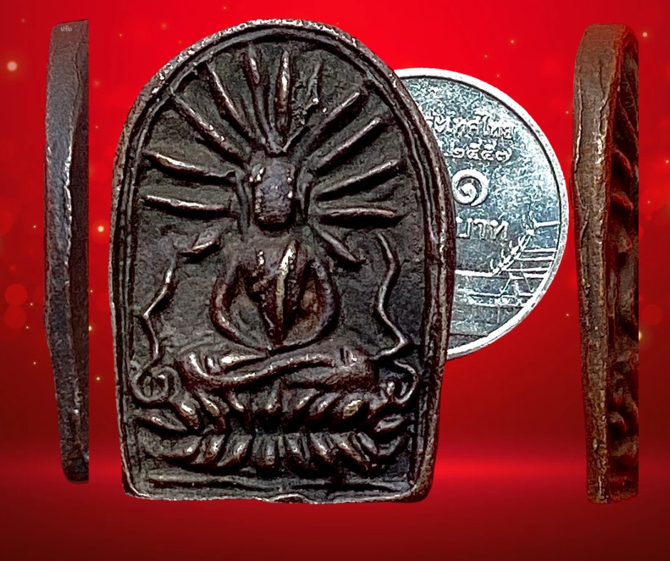 เหรียญหล่อโบราณเนื้อทองผสมพิมพ์เล็บมือรูปพระฉัพพรรณรังสี ท่านเจ้าจุ้ย วัดสามปลื้ม ปี 2475 ขนาด 2.2 x 3.5 ซม. 500.- บาทครับ.