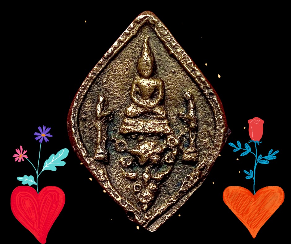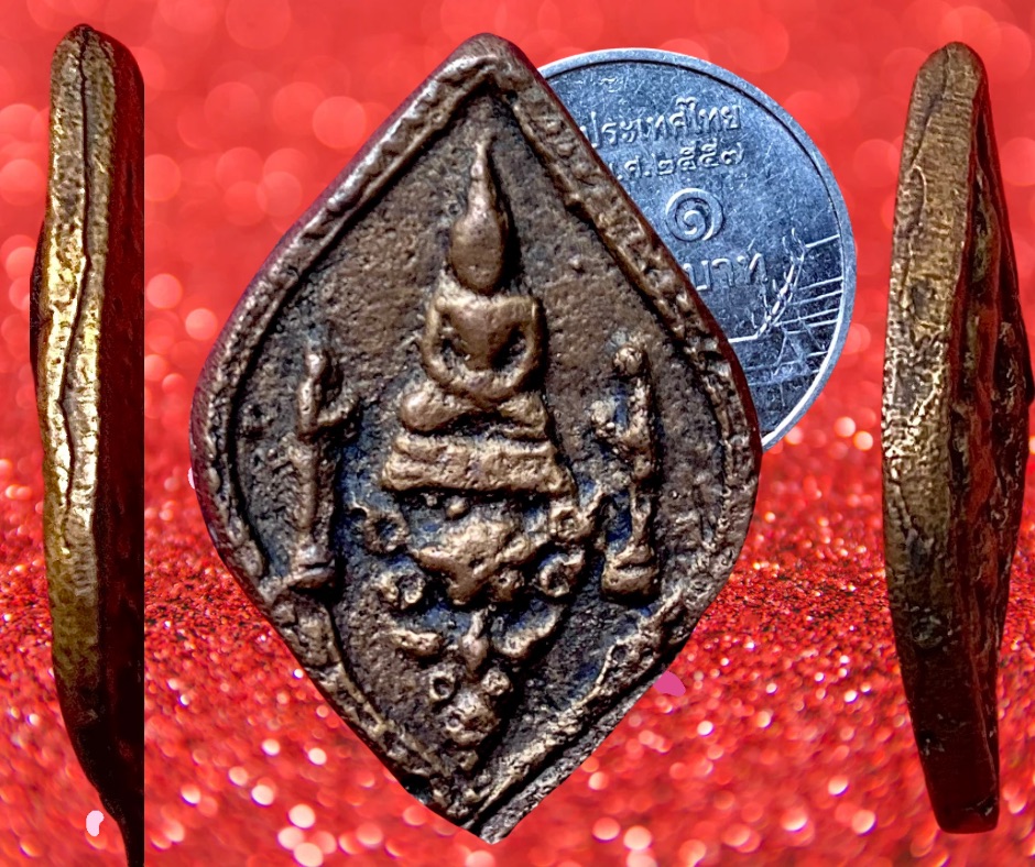 หรียญหล่อโบราณเนื้อทองผสม ปี 2485 หลวงพ่อวัดเขาตะเครา เพชรบุรี ขนาด 2.5 x 3.5 ซม. 1,500.- บาทครับ.