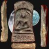 พระยอดขุนพลกรุเวียงกาหลง เชียงราย พบที่เมืองเก่าเวียงกาหลง อำเภอเวียงป่าเป้า ตามหลักฐานที่บันทึกไว้มี 14 พิมพ์ ที่รู้จักและนิยมสะสมกันจะเป็นพิมพ์ นก – ปลา ปัจจุบันพบซากโบราณที่เป็นวัดร้างถึง 50 แห่ง สันนิฐานว่าพระกรุเวียงกาหลงและกรุต่าง ๆ เป็นพิมพ์เดียวกันมีลักษณะแตกต่างกันบ้างเล็กน้อย โดยสร้างต่อเนื่องกันมาหลายวัดต่างวัดต่างบรรจุในเจดีย์ของวัด ถ้าของกรุเวียงกาหลง เนื้อดินจะเป็นสีขาวนวล หรือขาวอมเหลือง คราบกรุจะมีสีเทาเข้ม หรือคราบกรุจะแตกต่างกันไปตามธรรมชาติในบริเวณที่พบไม่เป็นข้อยุติ องค์นำมาเสนอนี้เป็นอีกหนึ่งพิมพ์ที่พบน้อย สภาพสมบูรณ์ ขนาด 2.5 x 4.5 ซม. 1,300.- บาทครับ.