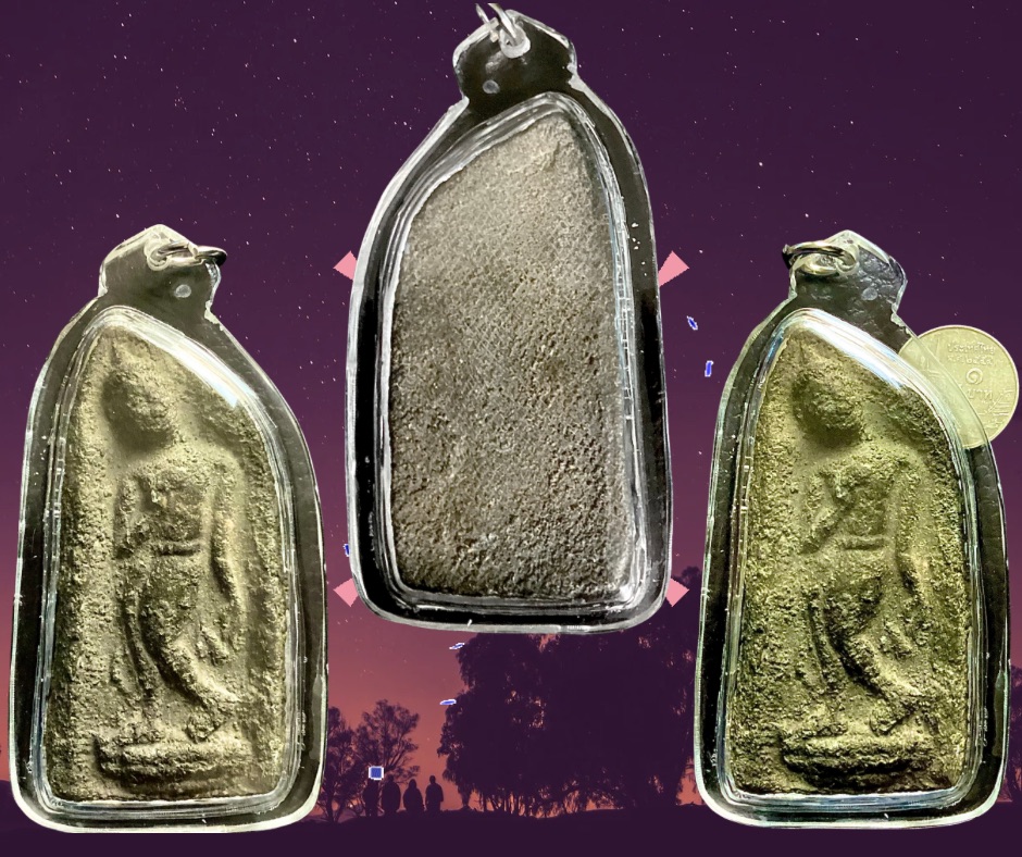 พระลีลาฝักดาบเนื้อชินเงินกรุวัดมหาธาตุ เพชรบูรณ์ วัดมหาธาตุ เป็นวัดหลวงสร้างในสมัยอยุธยาตอนต้น กรมศิลปกรได้เปิดกรุปี 2511 มีหลายพิมพ์เป็นเนื้อชินเงินทั้งหมด พุทธคุณด้านแคล้วคลาด คงกระพันชาตรี พระลีลาฝักดาบองค์นี้เป็นพิมพ์ใหญ่ ขนาด 3.5 x 7.0 ซม. พระสภาพสมบูรณ์ ฝ้ากรุ นวลกรุ สนิมตีนกา มีเต็มองค์ หน้า-หลัง ความสวย 80 % 3,500.- บาทครับ.