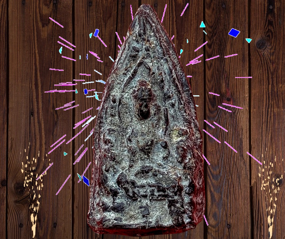 พระเกศาครูบาเจ้าศรีวิชัยเนื้อว่านผสมครั่งบรรจุเส้นเกศา ปี 2470-2479 พิมพ์พระเลี่ยง วัดบ้านปาง ลำพูน. ขนาด 2 x 4 ซม. 500.- บาทครับ.