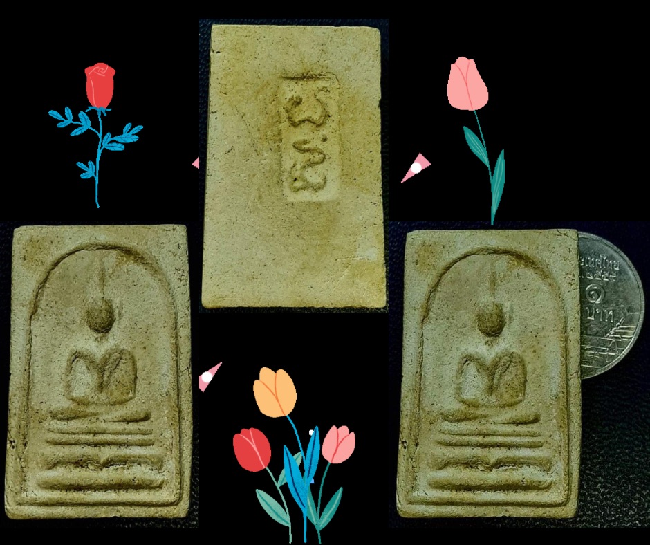 พระสมเด็จพิมพ์ขาโต๊ะหลังยันต์ปี 2516 สมเด็จพระพุฒาจารย์ (เสงี่ยม) วัดสุทัศน์ ฯ กทม. ขนาด 2.5 x 3.5 ซม. 500.- บาท … สร้างจากผงพุทธคุณที่ตกทอดมาจาก สมเด็จพระสังฆราช (แพ) ผงวิเศษจากสำนักต่าง ๆ ชื้นส่วนพระสมเด็จกรุวัดบางขุนพรหม และ ผงพระกรุวัดสามปลื้ม ผสมอยู่เป็นจำนวนมาก กดพิมพ์พระกันในวัดสุทัศน์ ฯ เมื่อปี 2511 สมเด็จ ฯ (เสงี่ยม) ท่านปลุกเสกเดี่ยวเป็นระยะ ๆ จนถึงปี 2516 จึงจัดพิธีพุทธาภิเษกใหญ่ที่อุโบสถวัดสุทัศน์ ฯ มีคณาจารย์ร่วมนั่งอธิษฐานจิตจำนวน 49 รูป