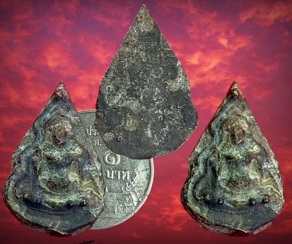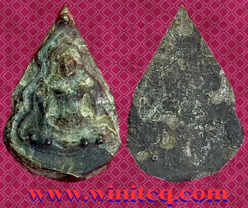 พระสังกัจจายย์เนื้อชินเงิน กรุน้ำมนต์ สุโขทัย พระพิมพ์นี้ที่พบจะเป็นเนื้อดินพิมพ์ เล็ก กลาง ใหญ่ เนื้อชินพบบ้างแต่หาดูยากมาก ๆ องค์นี้เป็นเนื้อชินเงินพิมพ์ใหญ่พระคล้ายเคยลงรักมาเก่าจากรุ โดยรวมสภาพสมบูรณ์ ขนาด 2 x 3 ซม. 1,705.- บาทครับ.