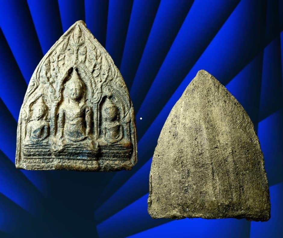 พระสามกรุวัดท่ากาน เชียงใหม่ เป็นพระเนื้อดินเผาที่มีขนาดใหญ่ แตกกรุจากเจดีย์ในวัดท่ากานท่ีสร้างในสมัยหริภุญชัยแต่พุทธศิลปแบบลพบุรี เนื้อค่อนข้างแกร่ง องต์นี้สภาพสวยและสมบูรณ์เดิมจากกรุ ขนาด 7.5 x 9.0 ซม. 1,900.- บาท ประกันแท้ครับ.