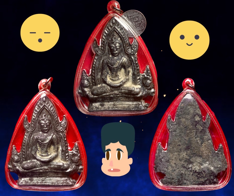 พระพุทธชินราชพิมพ์สมาธิเนื้อชินเงินสนิมดำผิวปรอท กรุเขาสมอแครง พิษณุโลก ที่พบมากจะเป็นเนื้อชินเงินและตะกั่วสนิมแดง เนื้อชินเขียวและเนื้อสำริดแบบพระบูชาก็มีแต่น้อยมาก เป็นศิลปะทวารวดี สุโขทัย และอยุธยา เขาสมอแครงเป็นชุมชนเก่ามีวัดโบราณบนเขาอยู่เจ็ดวัด ตำนานเล่าว่า พระชินราชพิมพ์สมาธิองค์ที่นำมาเสนอนี้ขุดได้ที่วัดเขาสมอแครงหนึ่งในเจ็ดวัดบนยอดเขาสมอแครงเมื่อปี 2490 และพระพิมพ์นี้ได้มีการขุดพบที่วัดพระธาตุ ต.ศาลาขาว สุพรรณบุรีเมื่อปี 2505 ซึ่งพบหลากหลายพิมพ์ สันนิฐานว่าน่าจะสร้างแล้วแบ่งมาบรรจุไว้อีกหนึ่งวัด ขนาด 5.0 x 6.5 ซม. สภาพสวยและสมบูรณ์เลี่ยมกันน้ำไว้นานเกินสิบปีแล้ว 2,500.- บาทครับ.